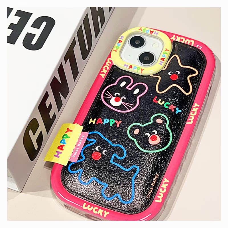 可愛動物卡通適用蘋果15Promax手機殼iPhone14新款15Pro軟13保護套12硅膠防摔11全包女款雙層印花小眾高級感