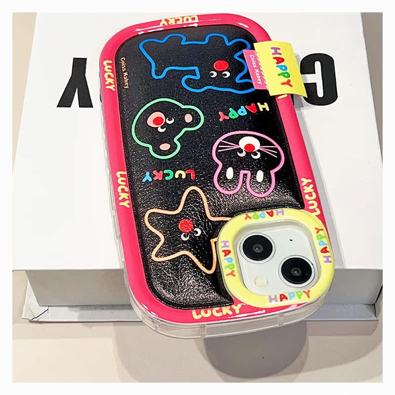 皮質彩色線條星星小狗適用蘋果15promax手機殼iphone14女款15pro新款13可愛創意個性12軟邊硬殼pro防摔11硅膠