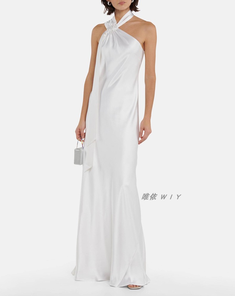 晚禮服高級質感長裙2023新款氣質優雅媽媽裝掛脖年會婆婆連衣裙女