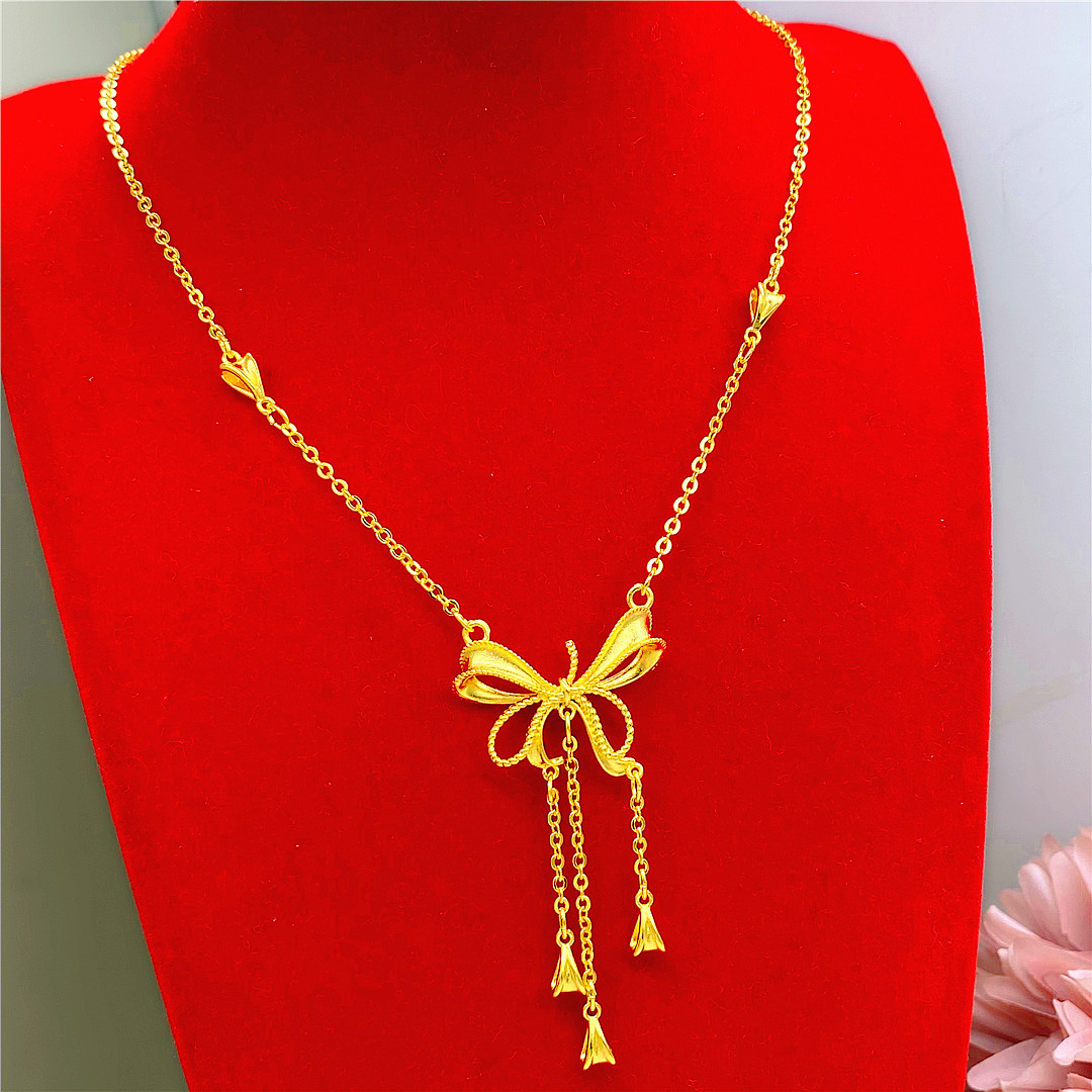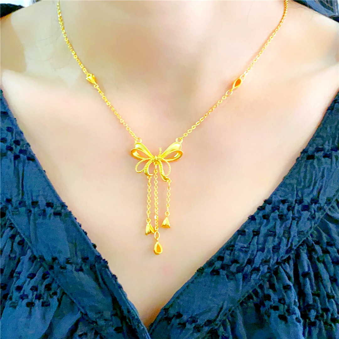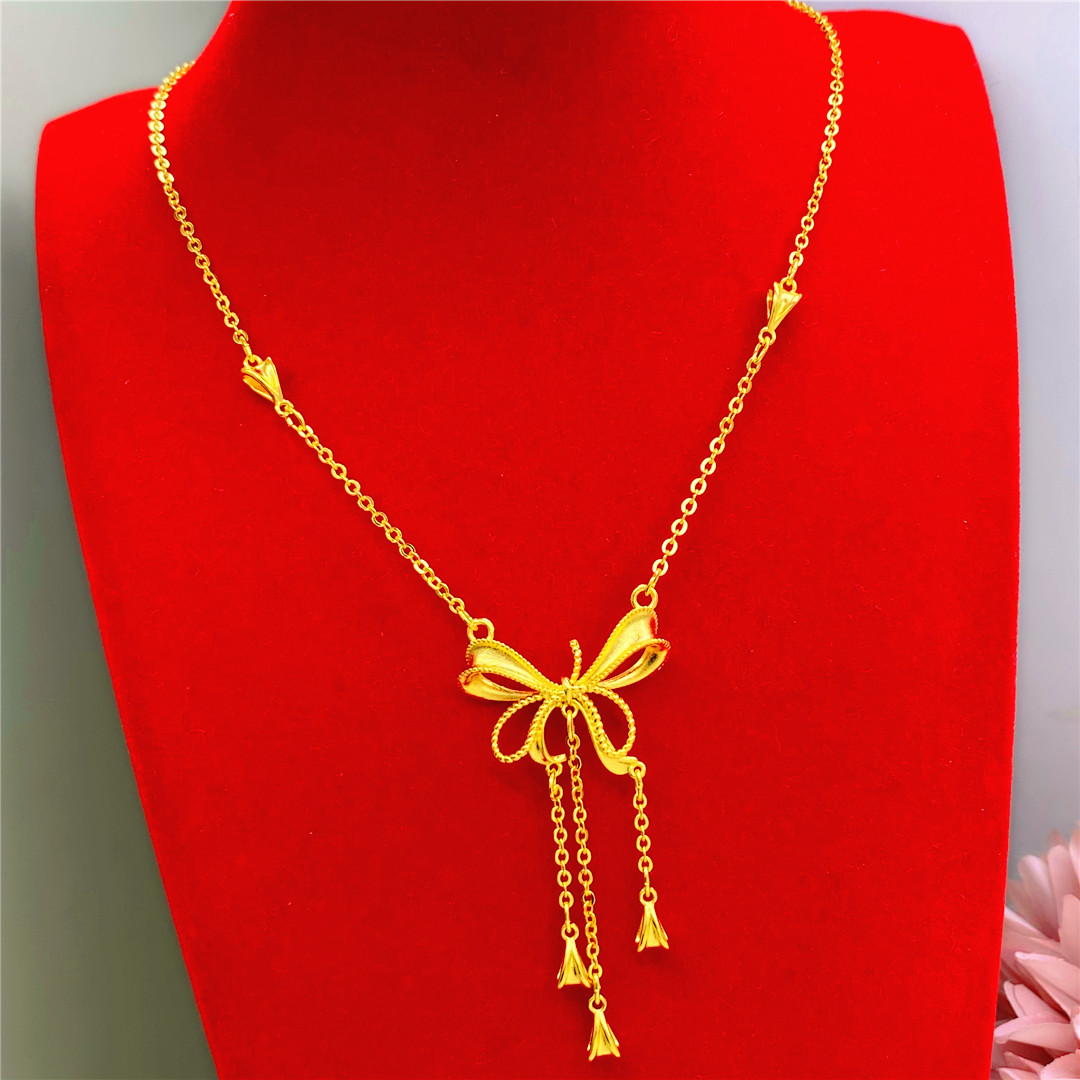 新品氣質在逃公主蝴蝶結流蘇項鏈金色女仿真沙金鍍金項鏈久不掉色