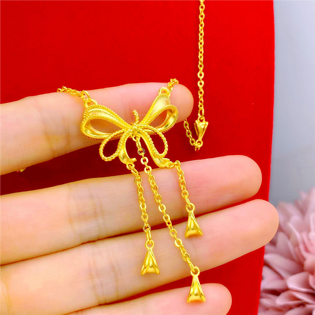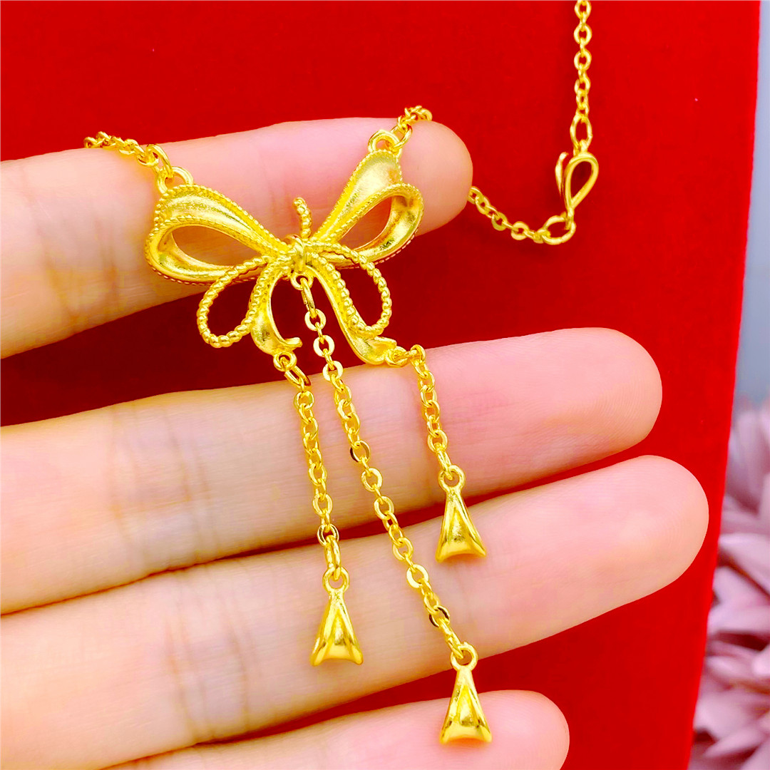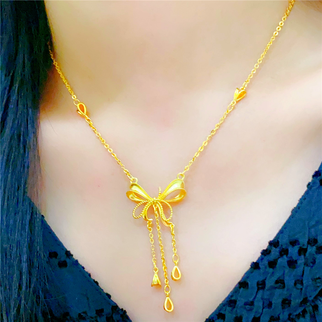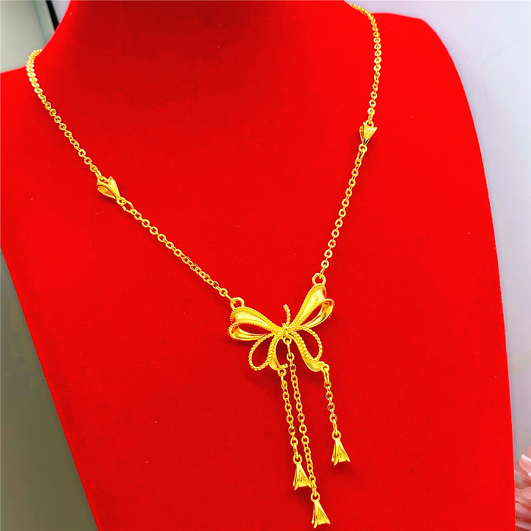 新品氣質在逃公主蝴蝶結流蘇項鏈金色女仿真沙金鍍金項鏈久不掉色