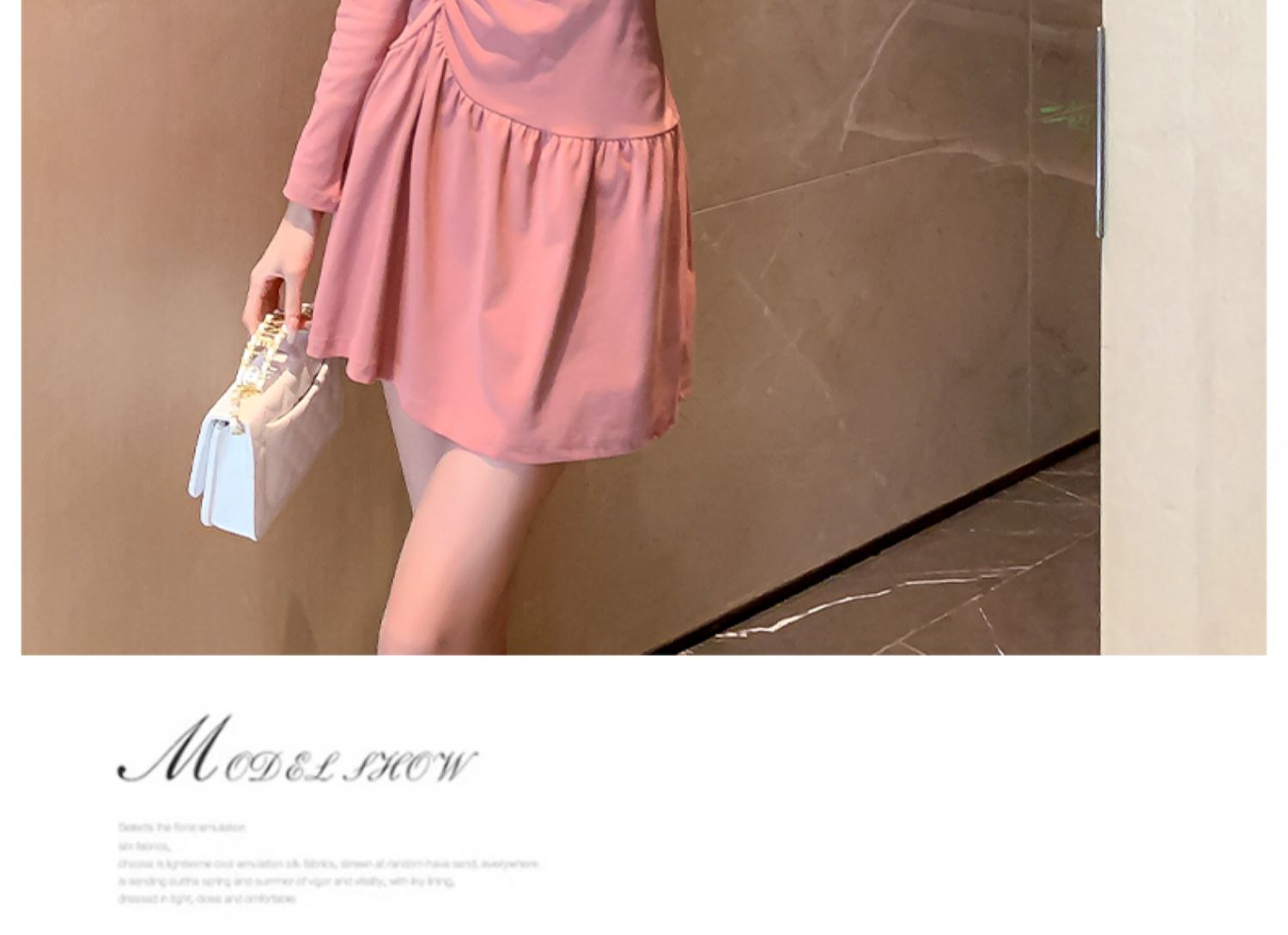 顯身材連衣裙褶皺顯胸大設計感秋裝女長袖緊身顯瘦短款性感包臀裙