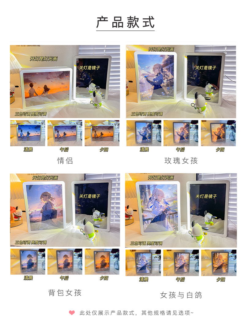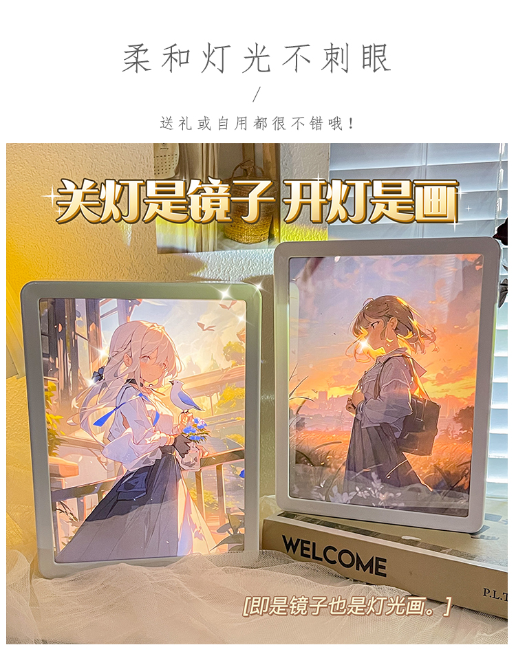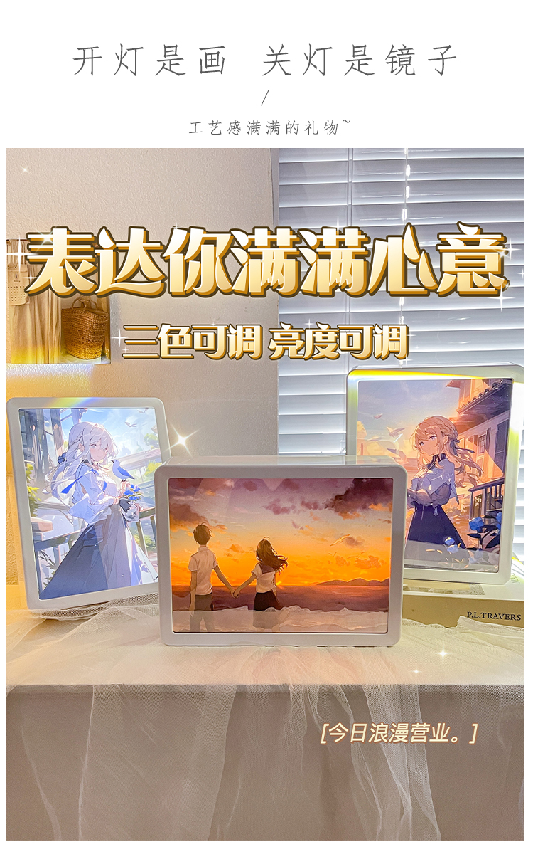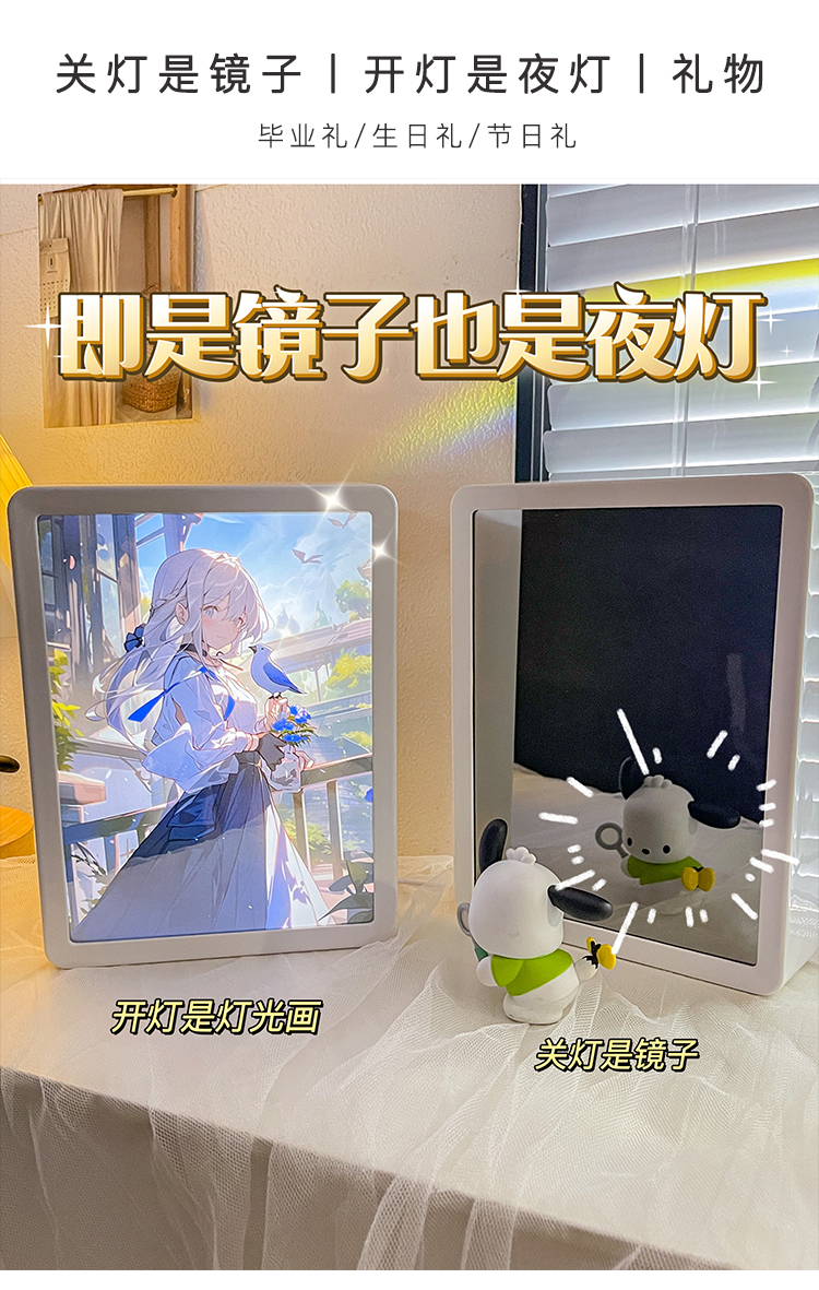 鏡子燈光畫定制動漫原神天官賜福diy照片半透鏡相框小夜燈生日禮