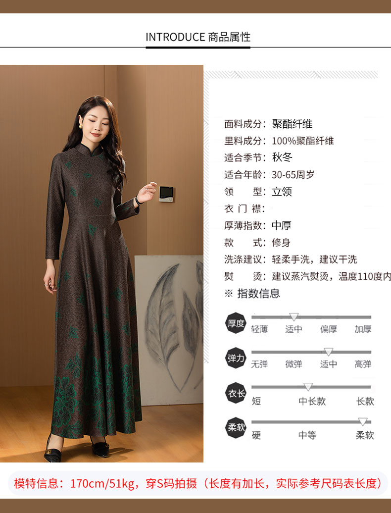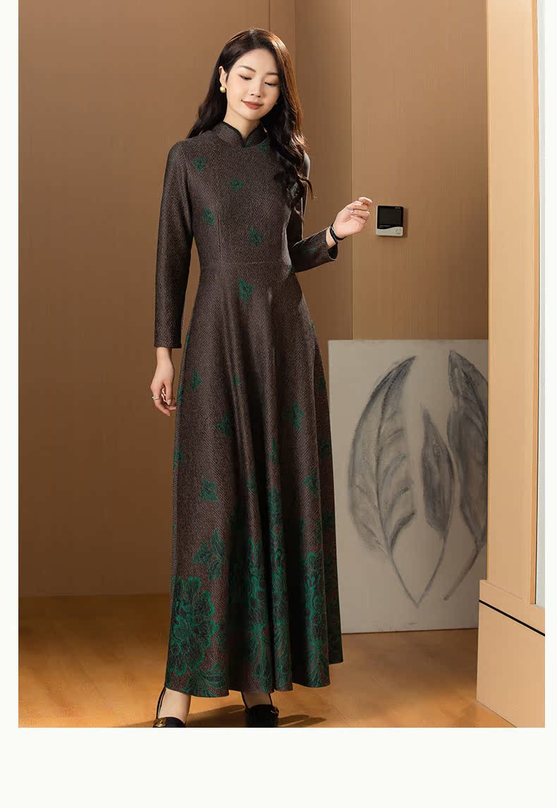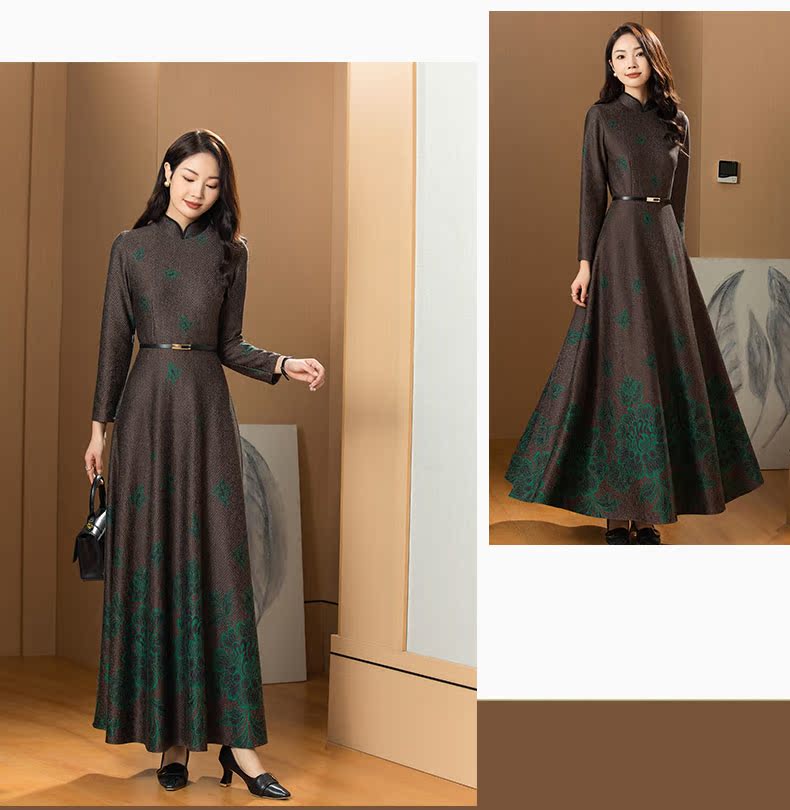 2023年冬季新款立領毛呢超長連衣裙