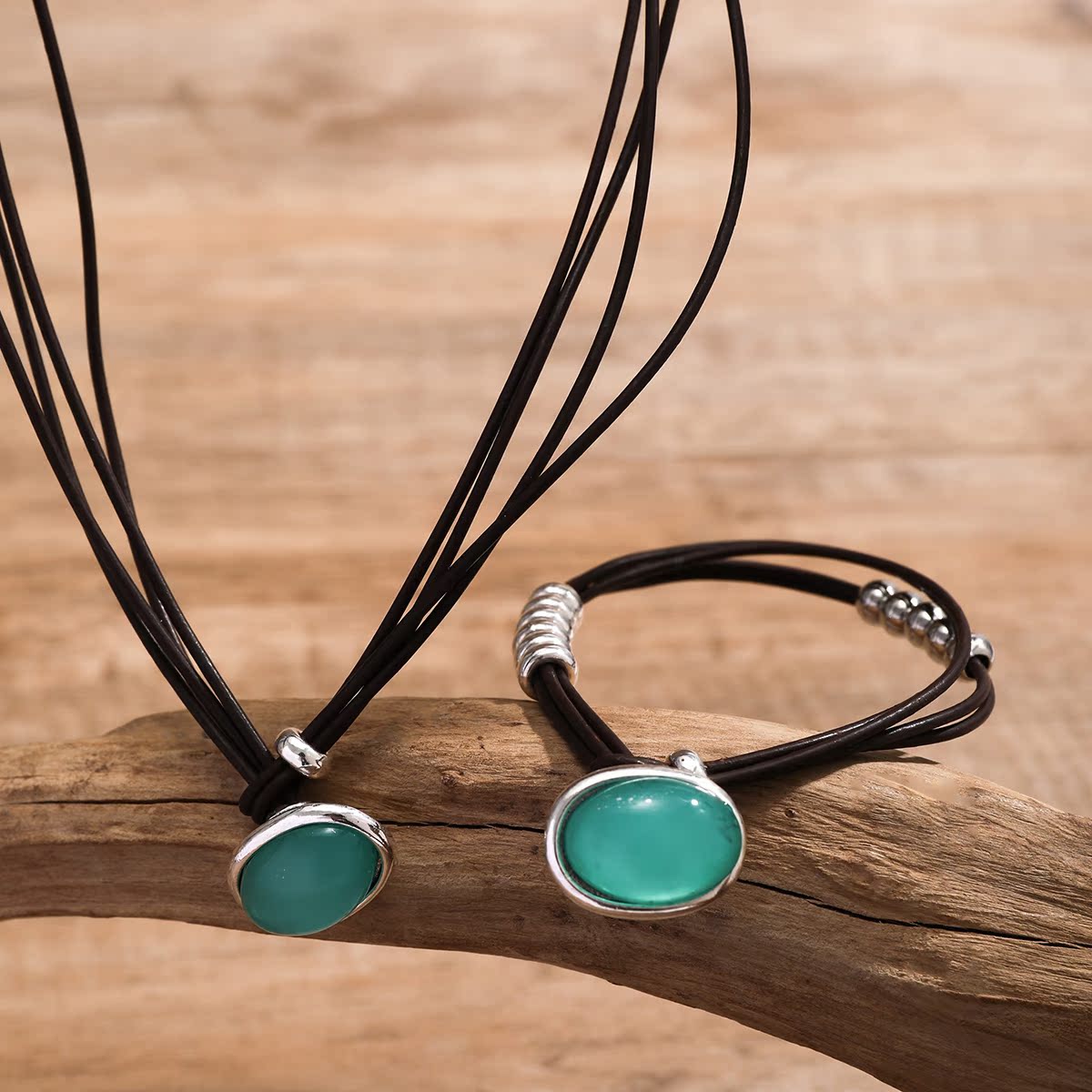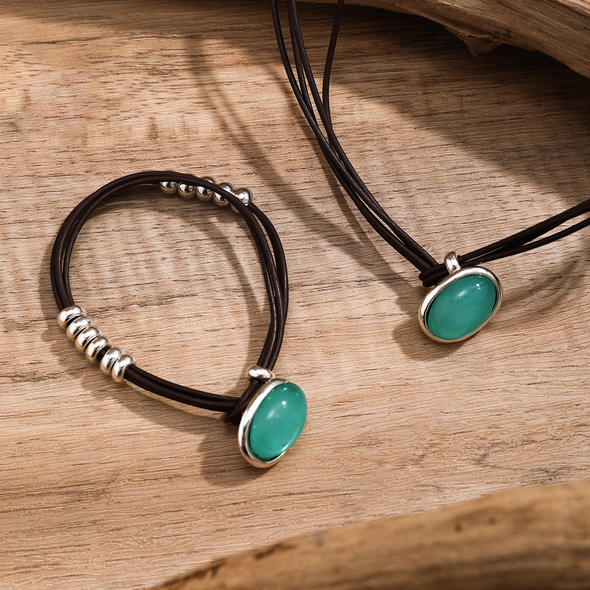 綠色橢圓墜絨繩手鏈項鏈套裝 秋冬時尚簡約個性網紅旅拍配飾品潮