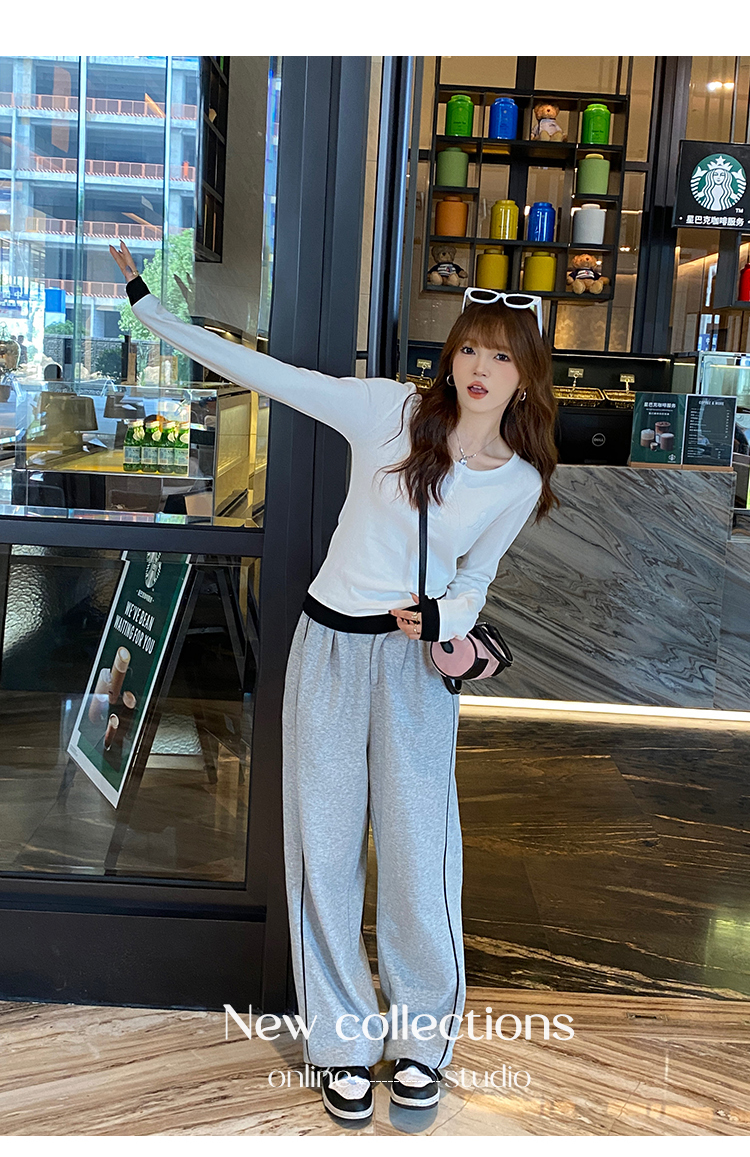小眾設計感寬松正肩長袖T恤春秋美式復古插肩百搭甜辣上衣女