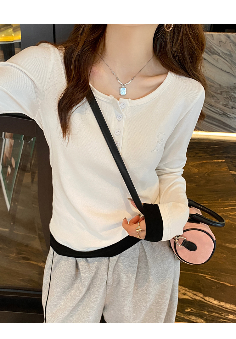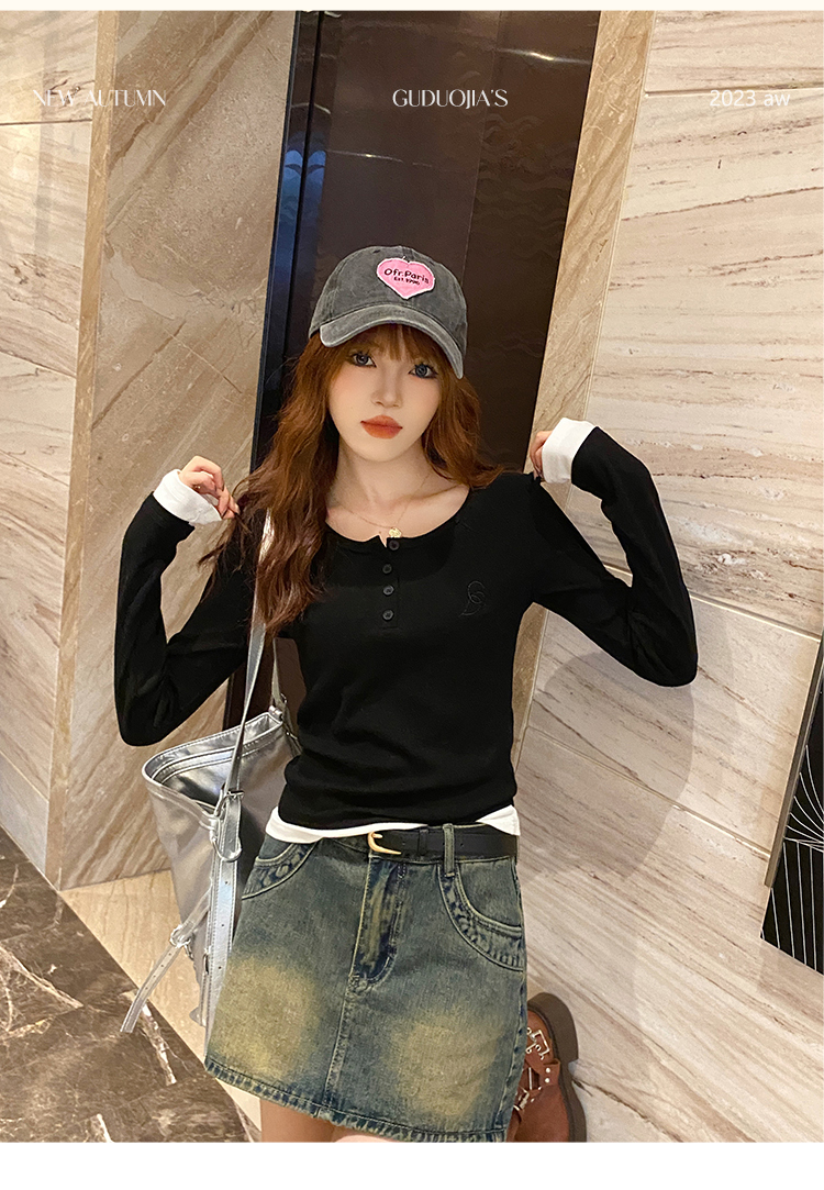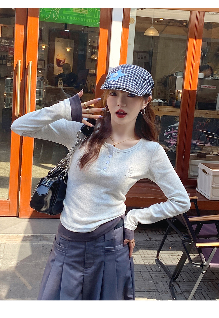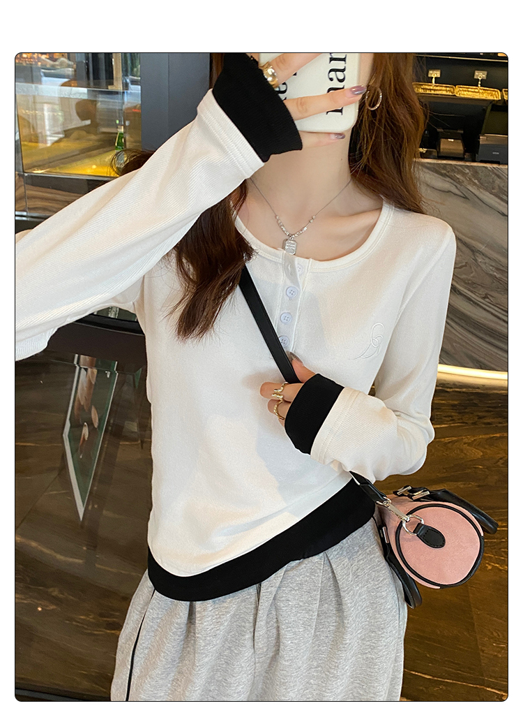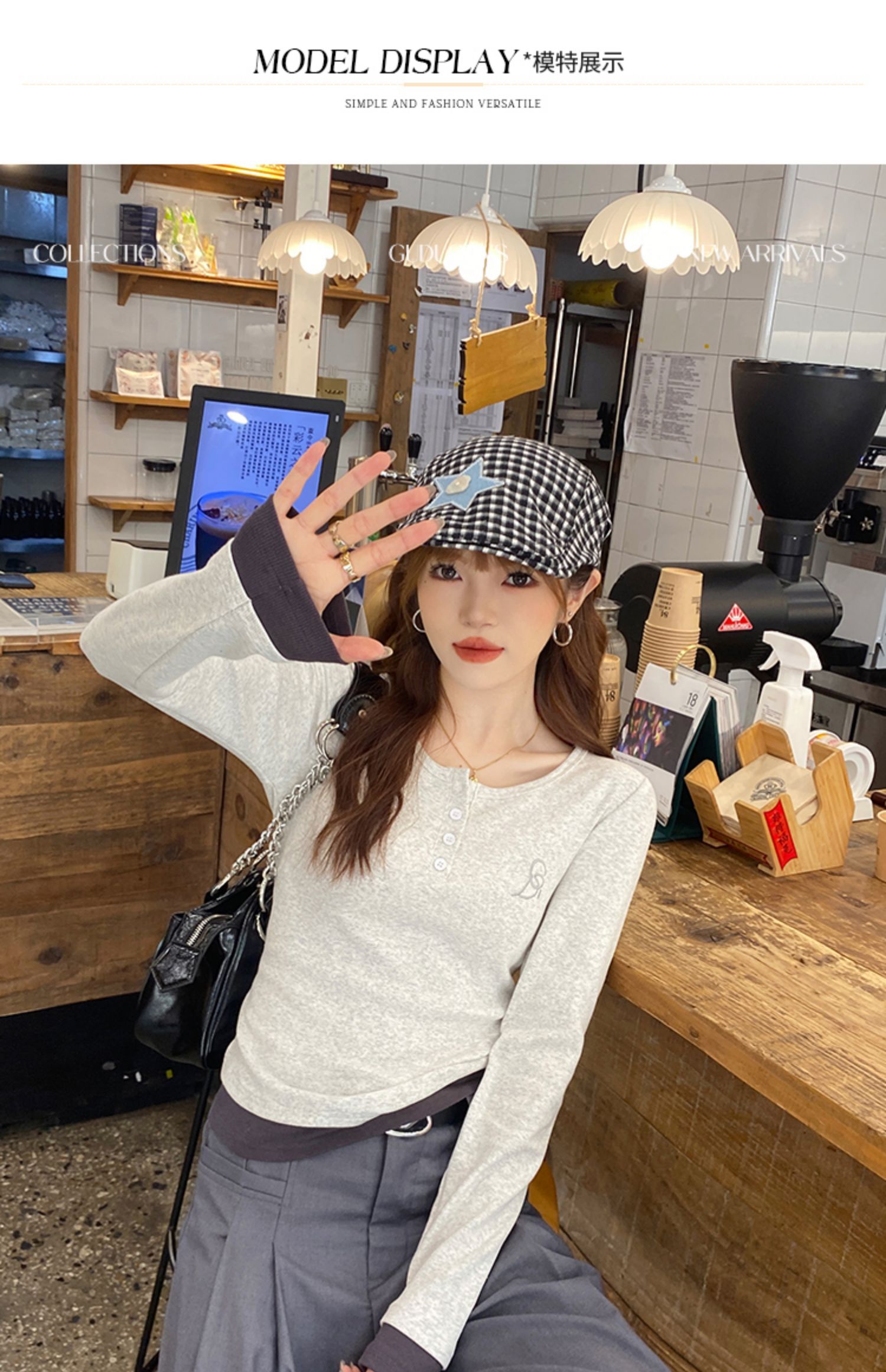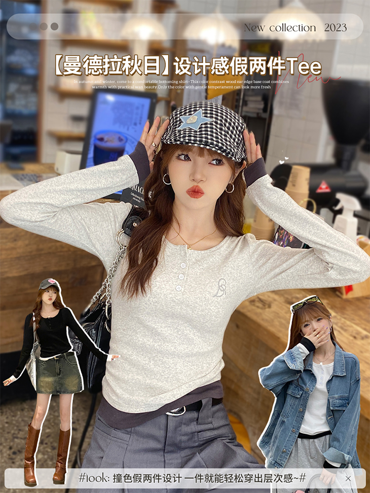 假兩件女上衣設計感小眾春秋正肩t恤長袖早秋2023新款打底衫內搭