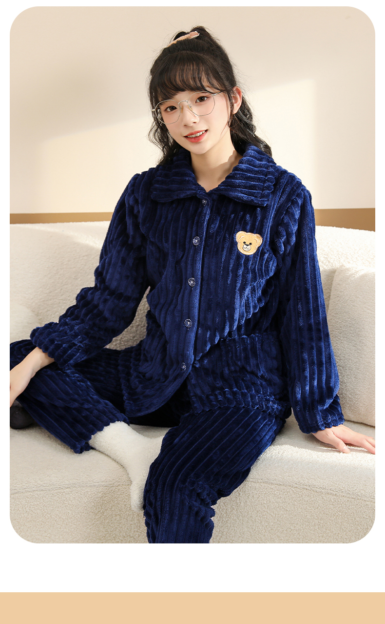 男士睡衣秋冬季款珊瑚絨青少年冬天長袖大碼女孩初中生家居服裝裝