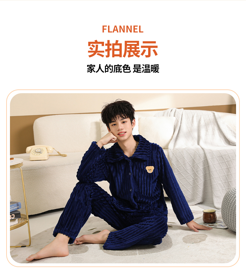 男士睡衣秋冬季珊瑚絨加厚加絨法蘭絨青少年男生春款天家居服套裝