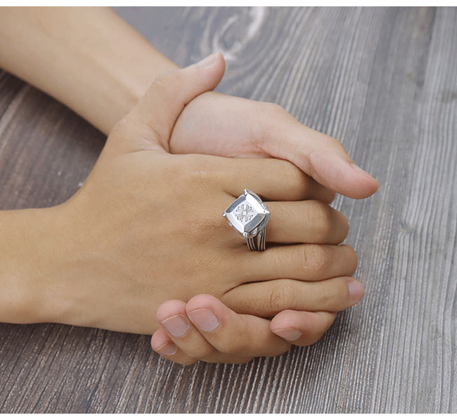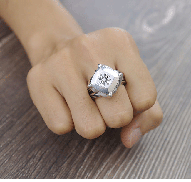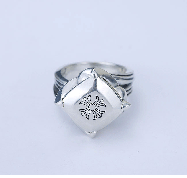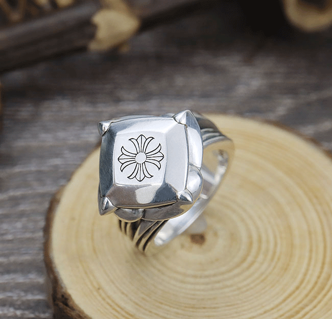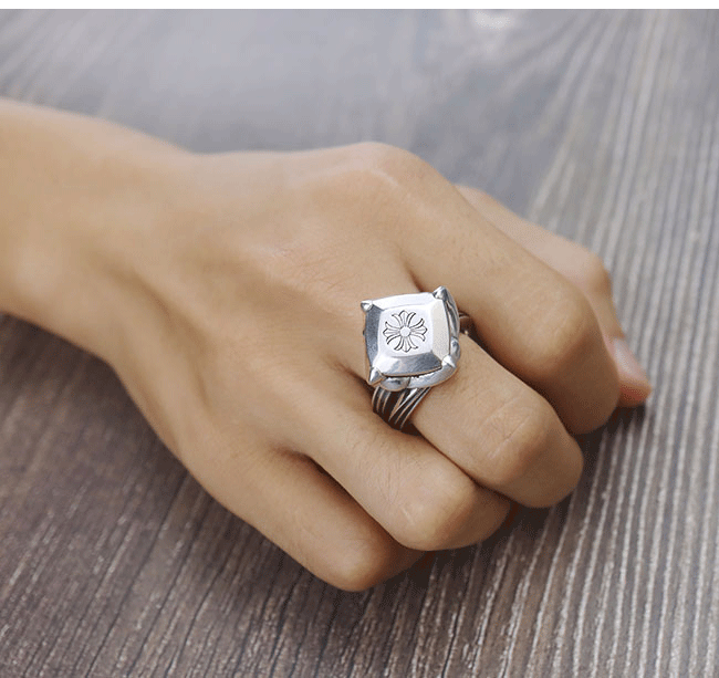 ROCK HEARTS朋克圖騰十字架十字花大鉆石形戒指男女925純銀指環舊