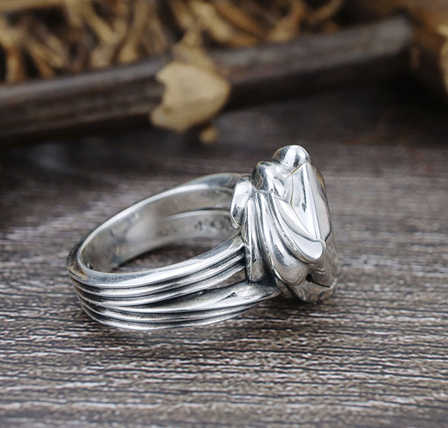 Detaj暗黑風黑白玫瑰花瓣肌理元素鏈條戒指925純銀復古男女小眾潮