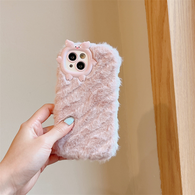 毛絨卡通可愛兔子適用蘋果15promax手機殼iphone14秋冬新款13毛茸茸12高級感小眾ins風原創防摔全包女個性11