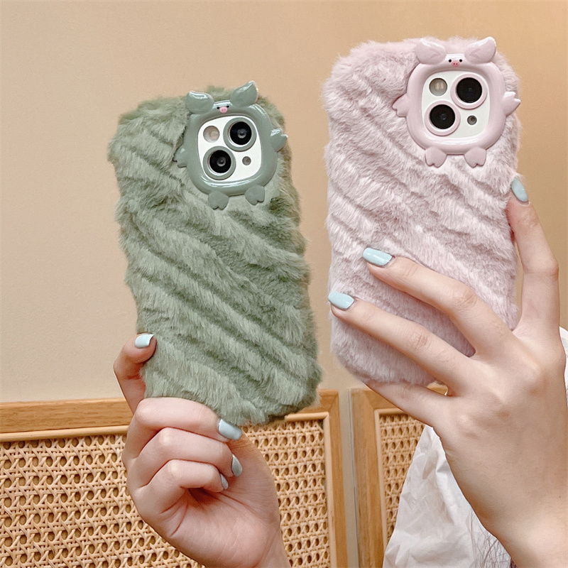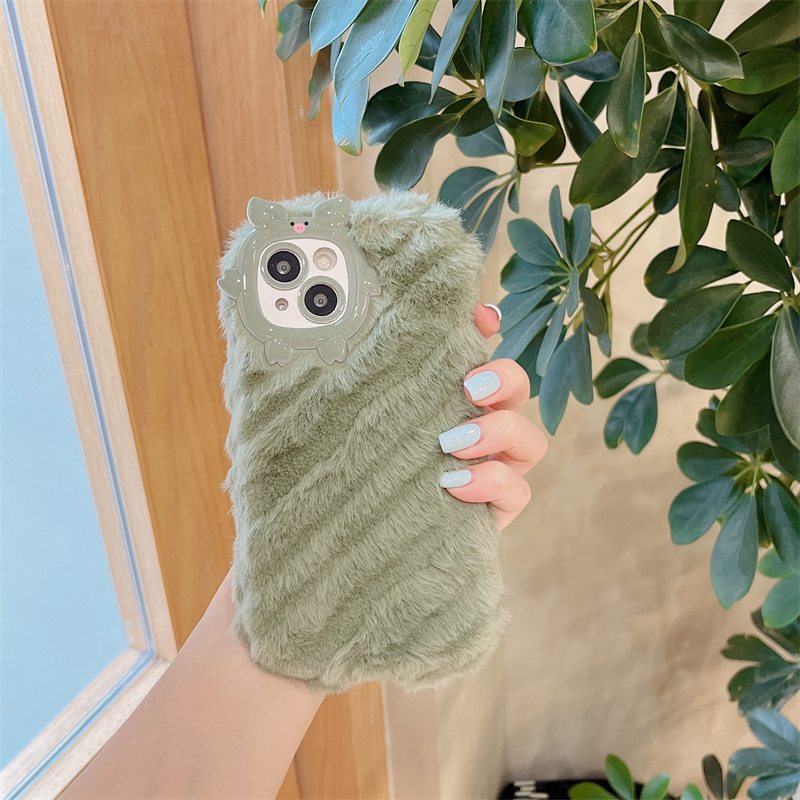 秋冬毛絨簡約純色適用蘋果15promax手機殼iphone14毛茸茸新款13米白藍綠粉色12高級感小眾ins防摔全包少女11
