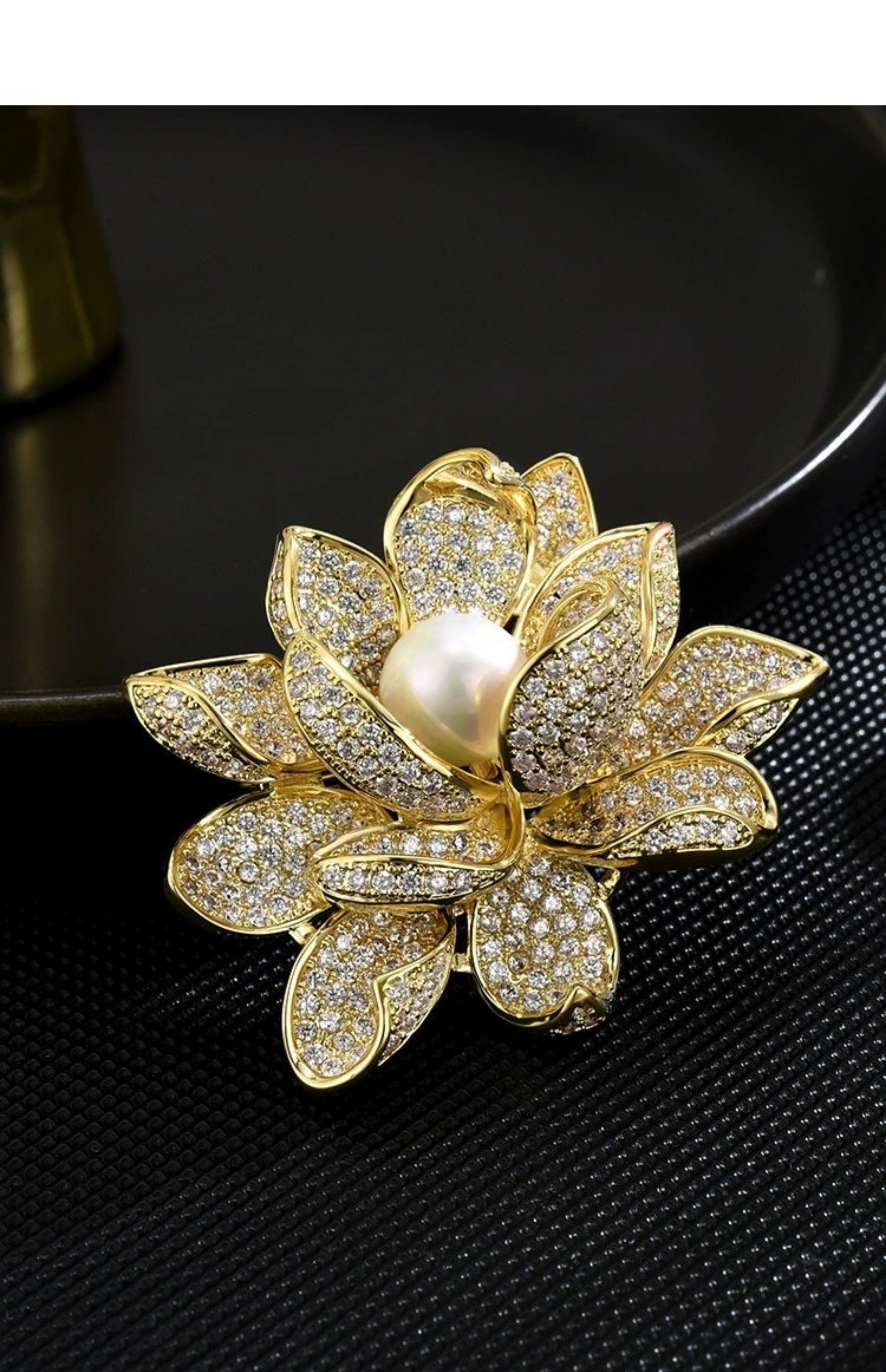 卡玫奈 新款優雅雙色選貝珠珍珠蓮花胸針 花朵鋯石別針胸花 女