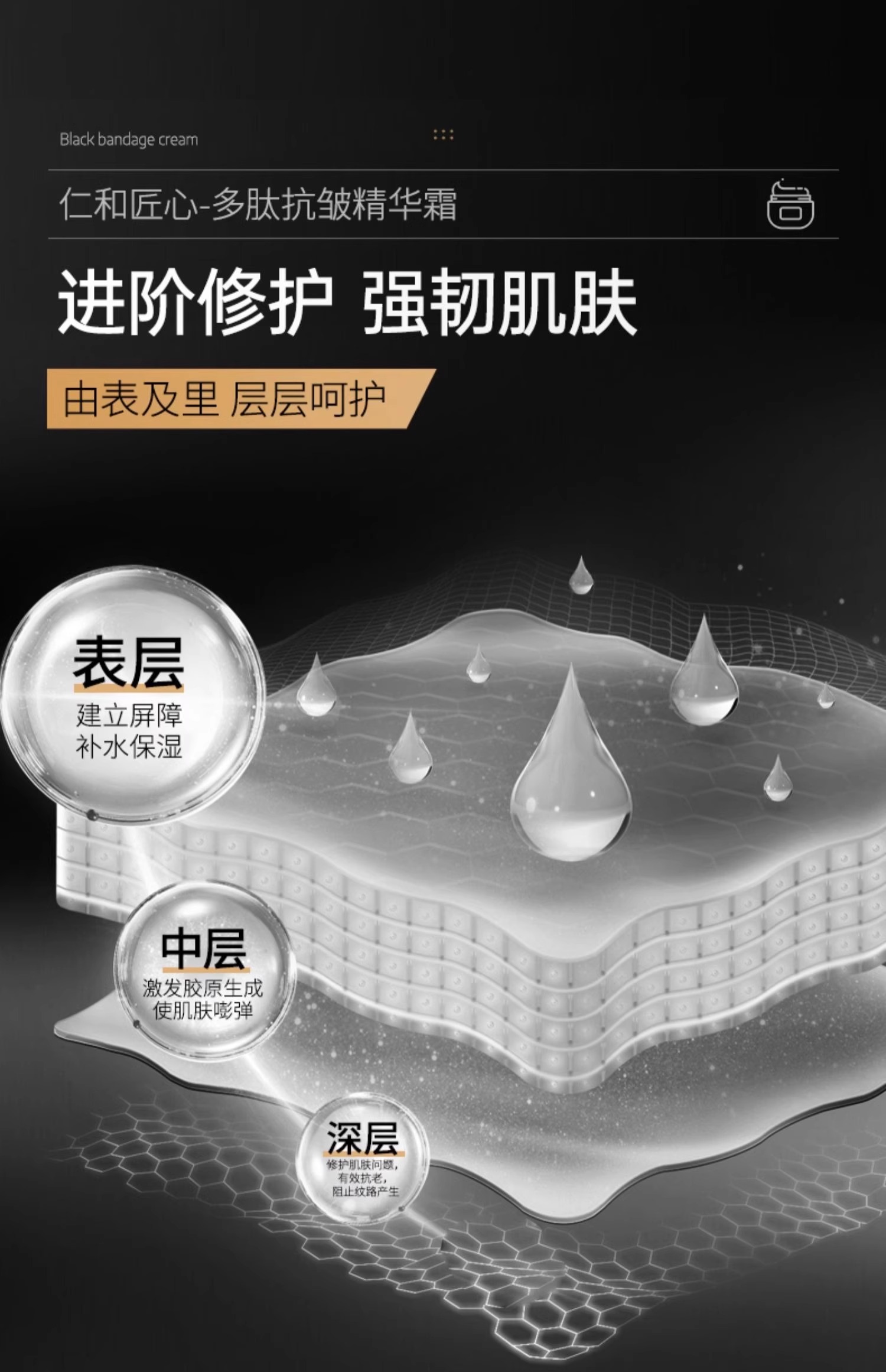 仁和匠心黑繃帶多肽面霜滋潤抗皺紋眼袋法令紋淡紋女衰老精華霜