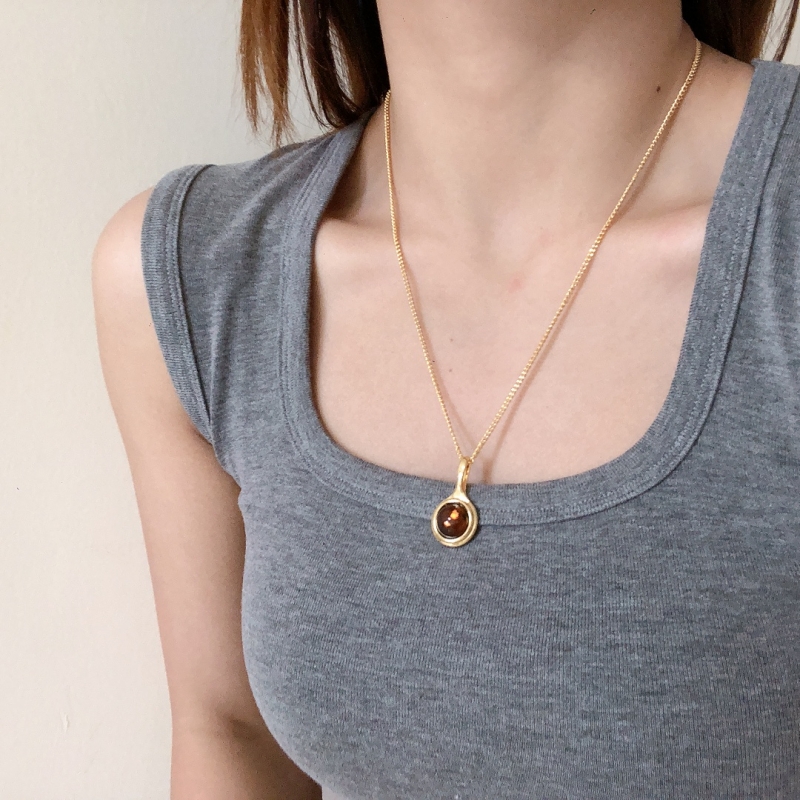 夏季小眾設計豬鼻子項鏈鎖骨鏈簡約百搭女士高級感金色豆豆清冷感