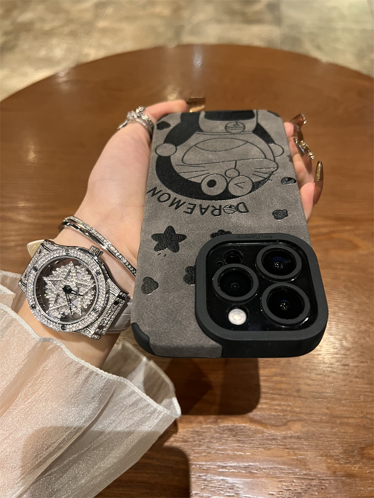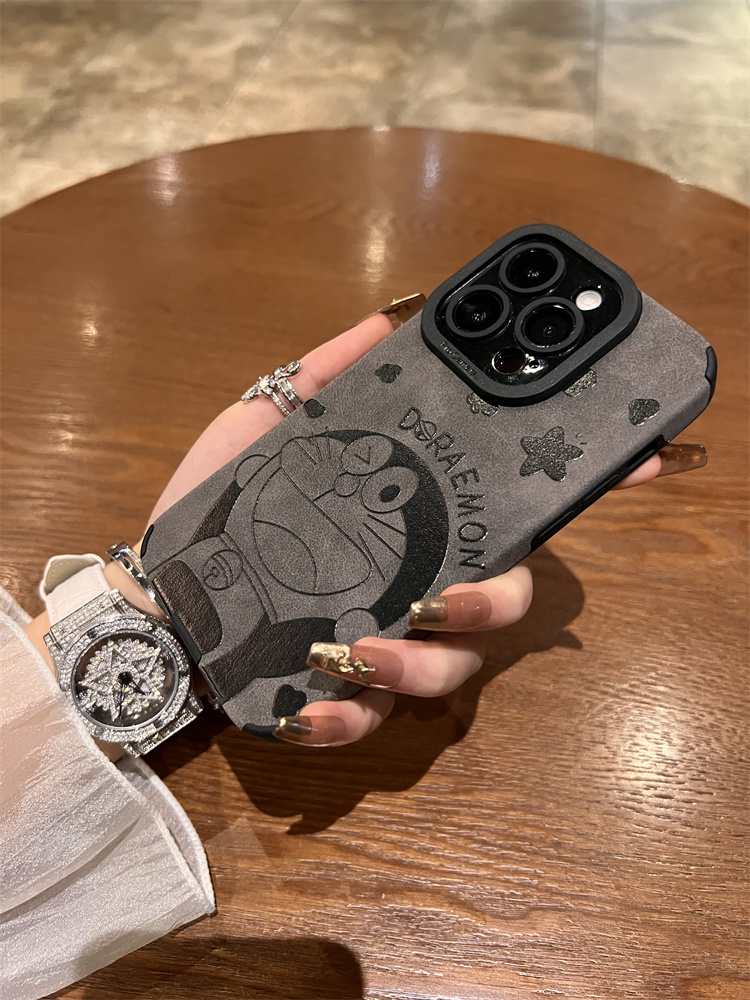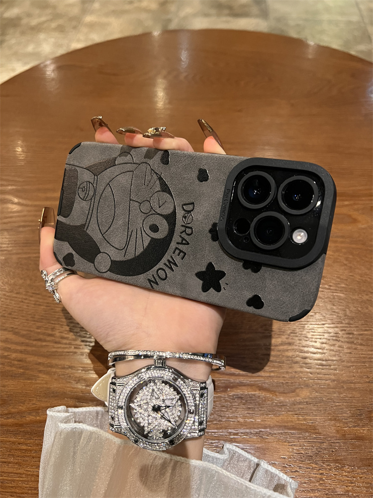 翻毛皮眨眼叮當貓蘋果15手機殼蘋果14新款iphone15promax高級感蘋果13套12防摔ProMax全包鏡頭Pro女男PM適用