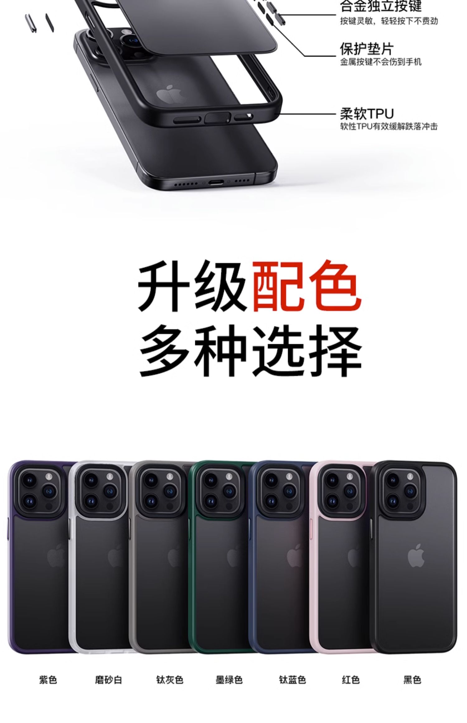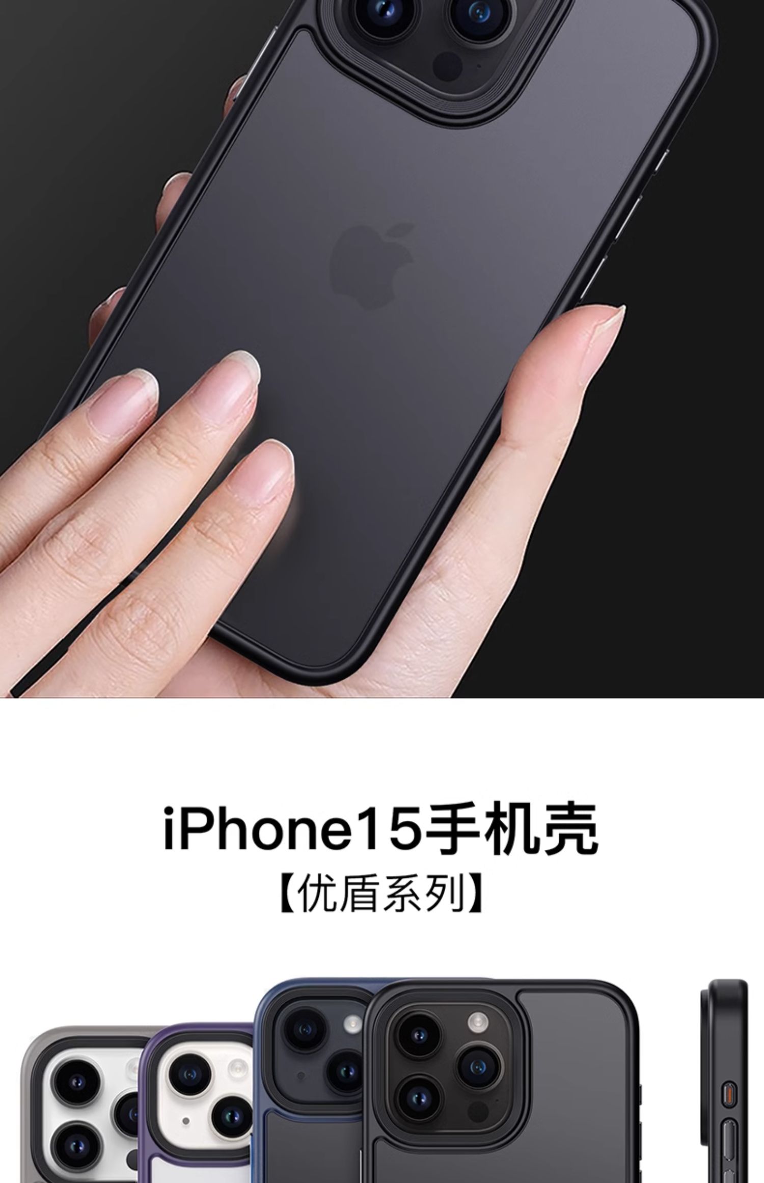 適用蘋果15pro手機殼防摔磨砂iPhone15 Pro Max保護套全包邊灰色超薄14pro硅膠軟新款13mini膚感潮牌12pm女男