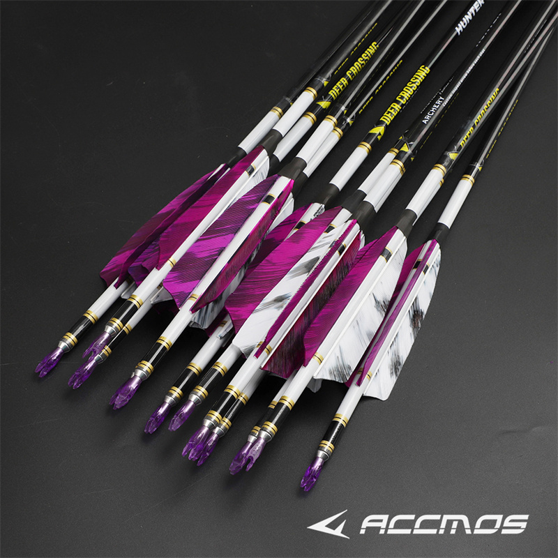 6.2鹿牌炫彩真羽純碳箭 狩傳統美獵弓箭專業碳箭防打釘貝特尾