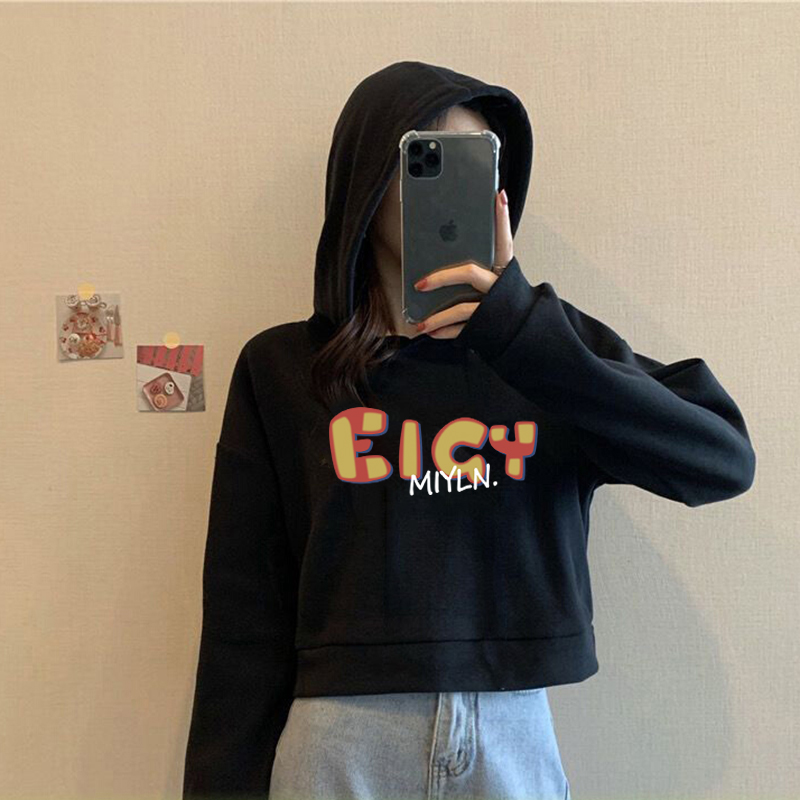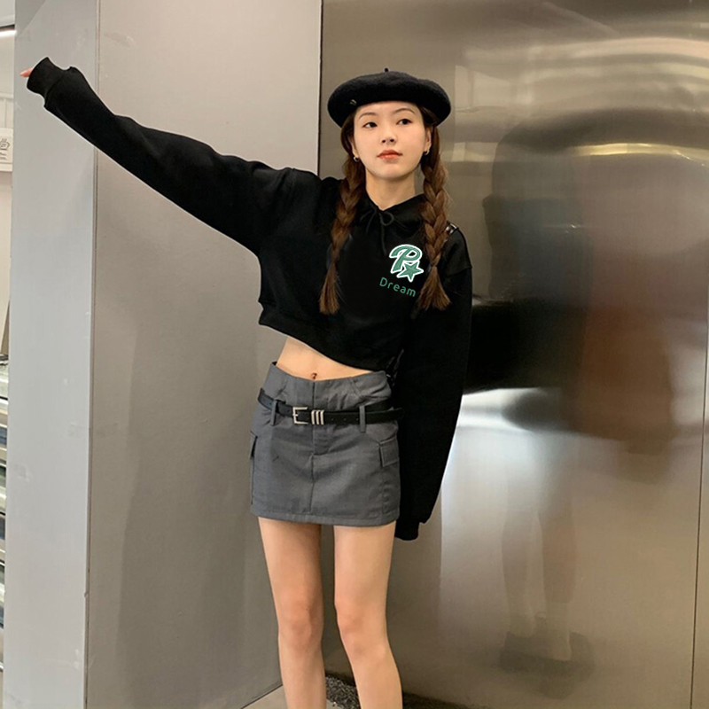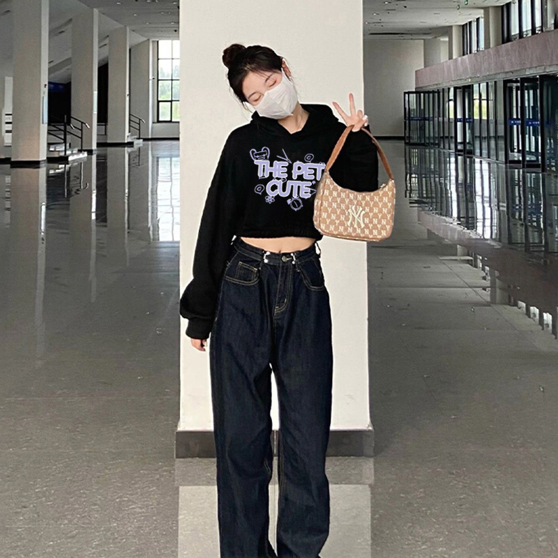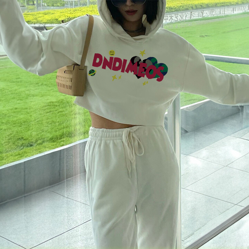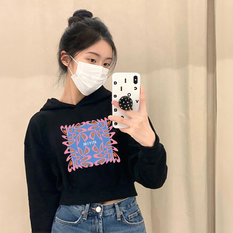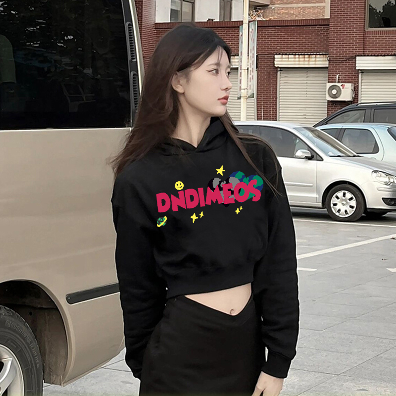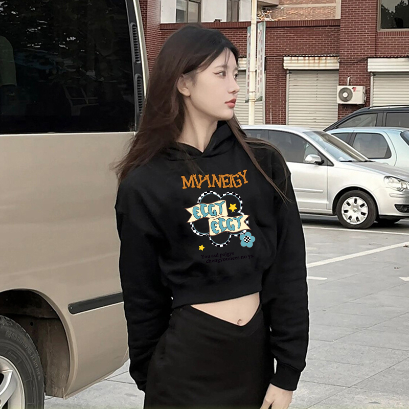 美式復古潮牌卡通減齡印花寬松連帽衛衣女短款小眾辣妹帽衫長袖