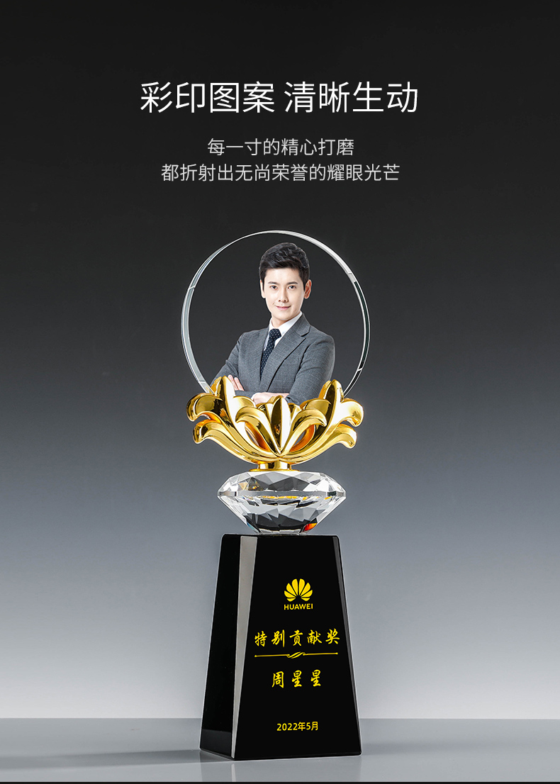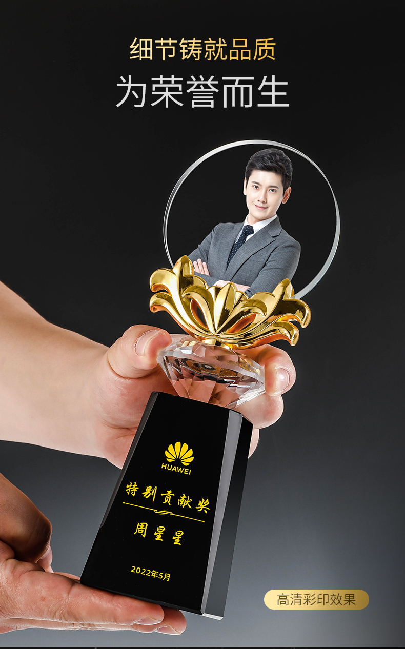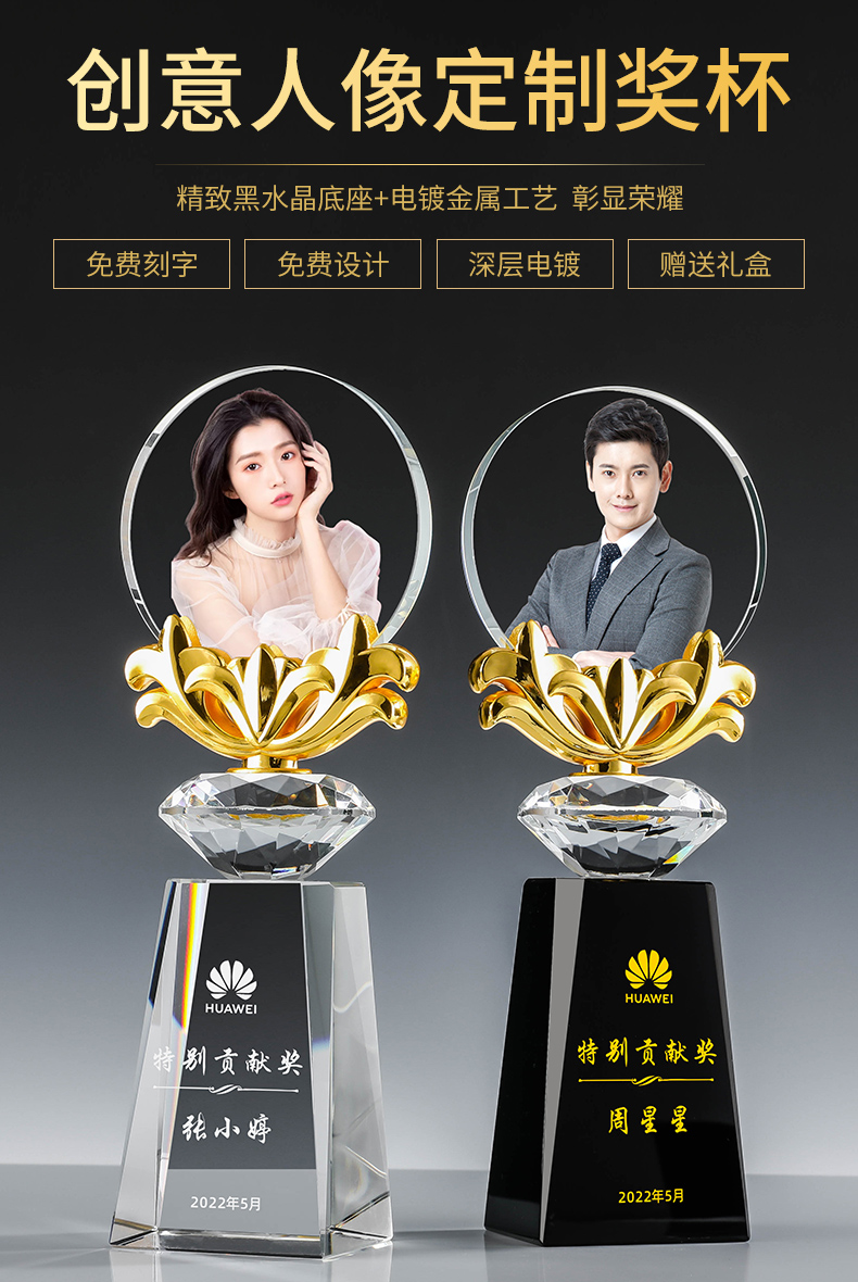 彩印人像照片水晶獎杯定制定e做創意年會員工頒獎銷冠金屬獎牌刻