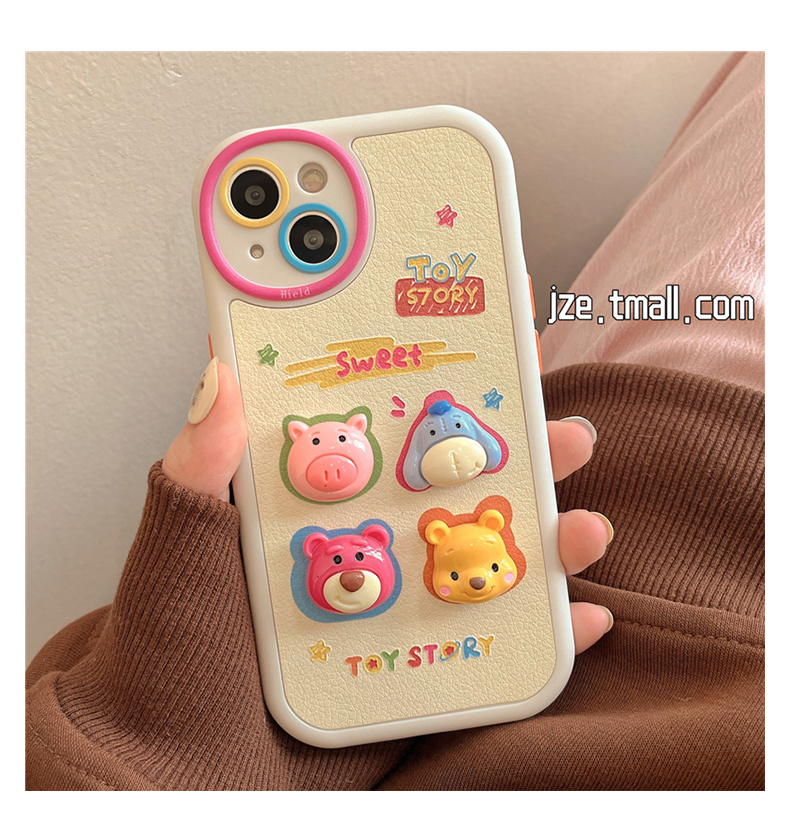立體可愛網紅卡通適用蘋果14皮質手機殼iPhone13ProMax新款15pro防摔12女款11硅膠14pro超萌創意小眾全包軟殼