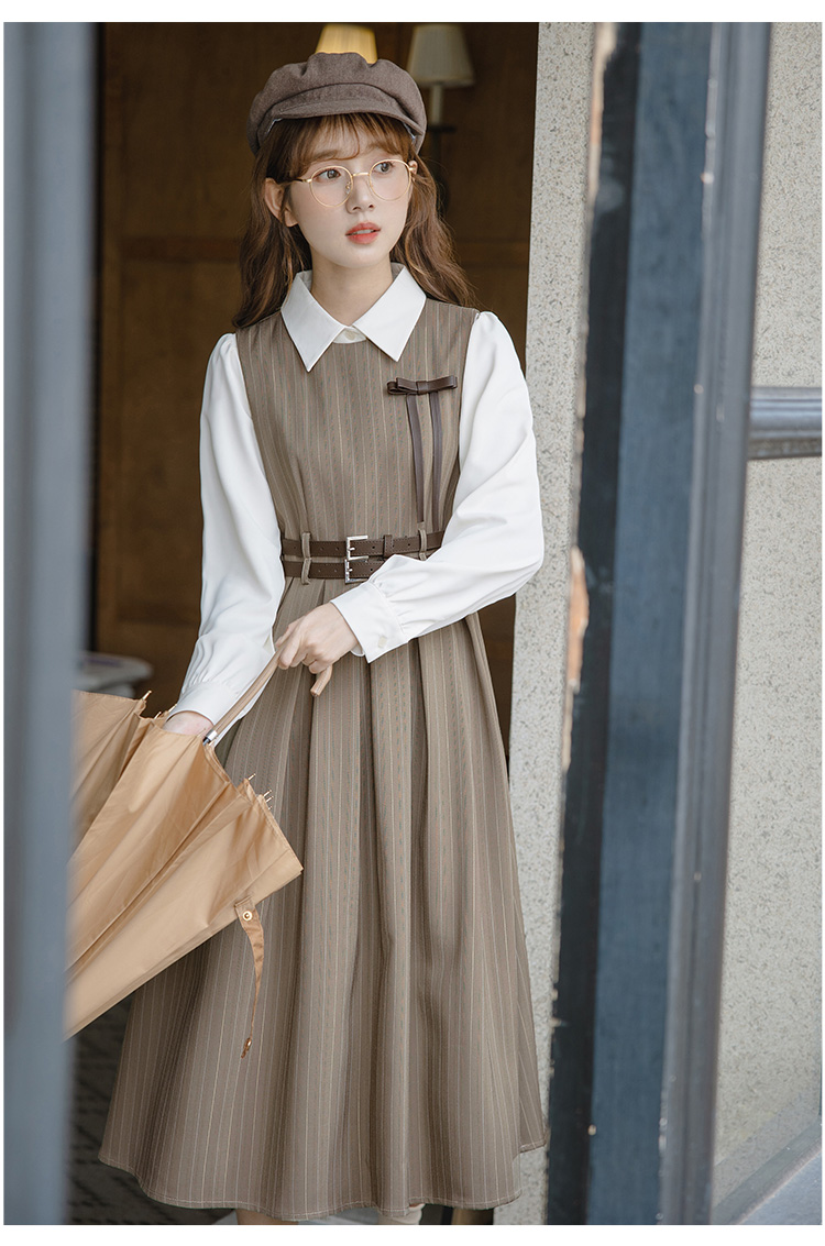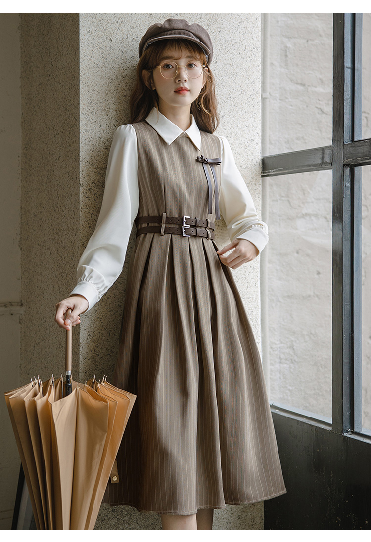 ms xidu可純可欲假兩件高腰連衣裙