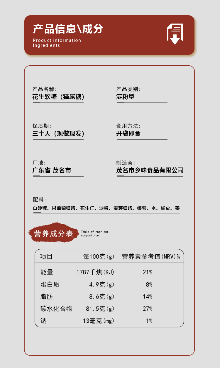正宗貓屎休閑食品電白花生懷舊軟糖