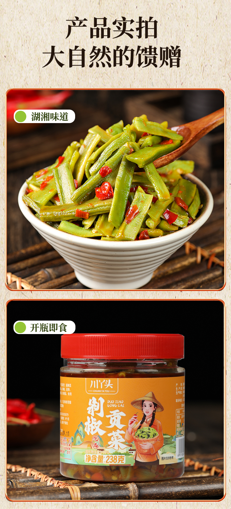 香辣貢菜下飯菜開味剁椒即食脆椒辣椒醬麻辣湖南特產咸菜榨菜拌飯