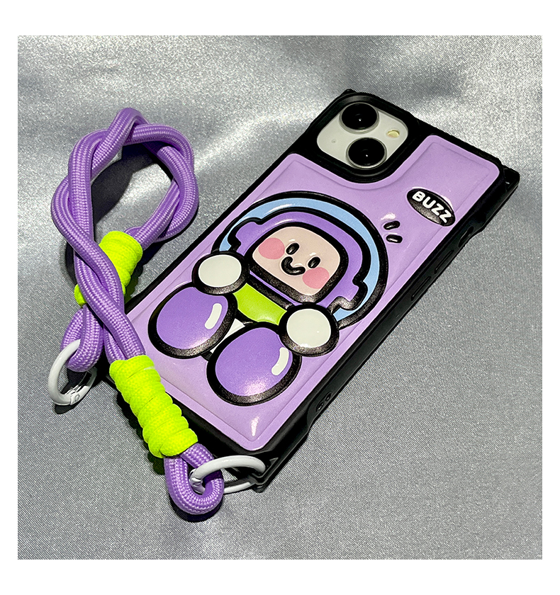 趣味可愛卡通帶掛繩適用蘋果14手機殼iPhone13ProMax新款15pro防摔12女款11硅膠14pro情侶小眾皮質全包軟殼套