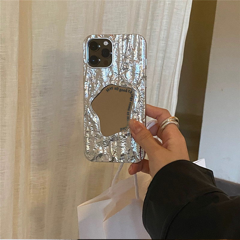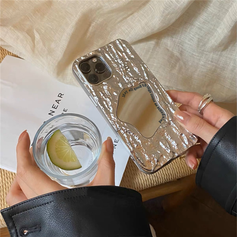 ins銀色褶皺巖石幾何鏡子適用蘋果14手機殼15ProMax高級感iPhone13創意iPhone13ProMax硅膠套14Pro新款11女潮