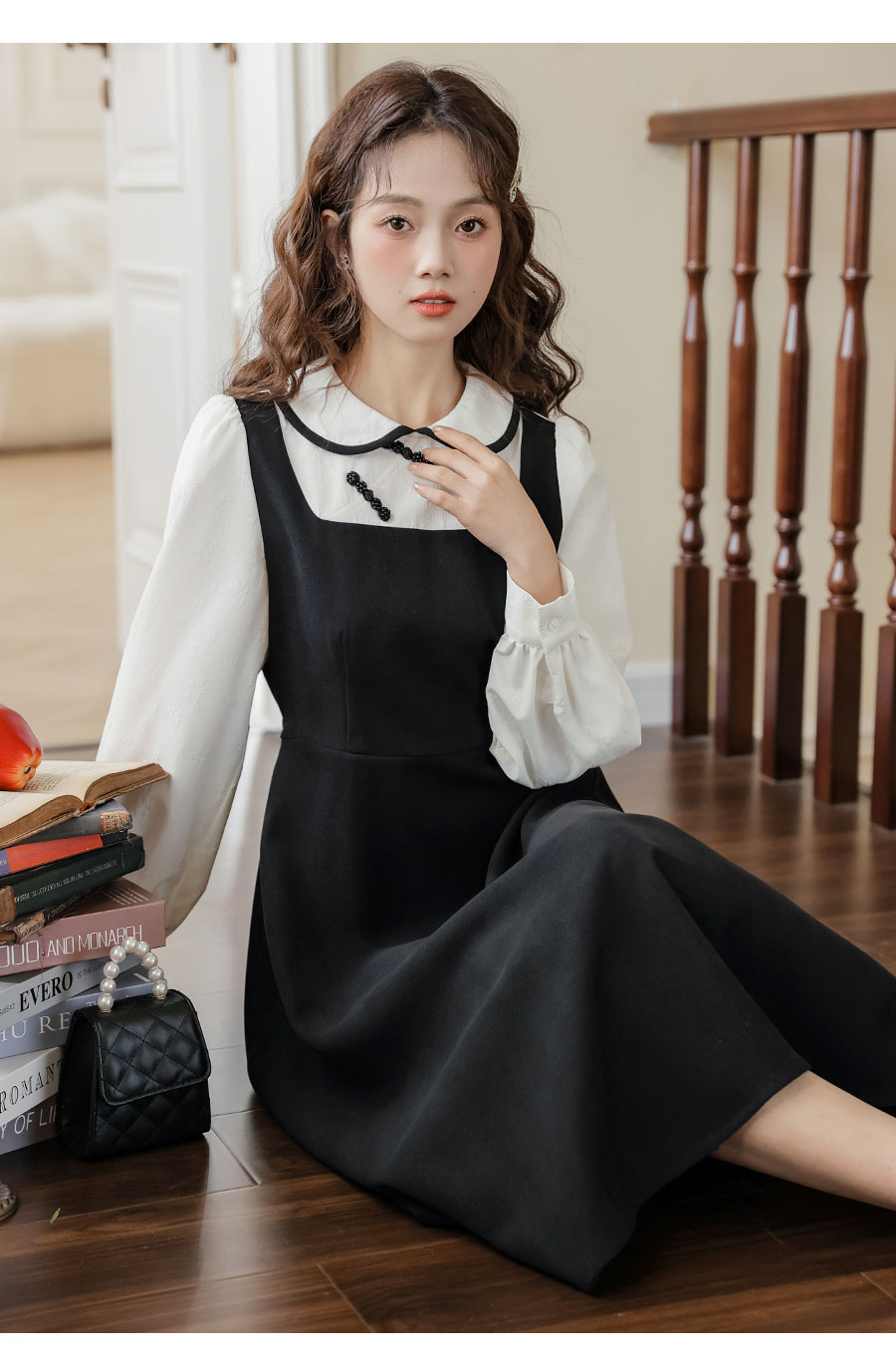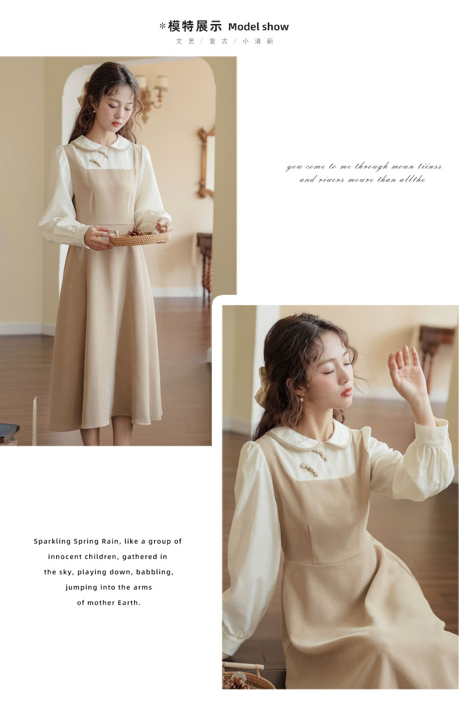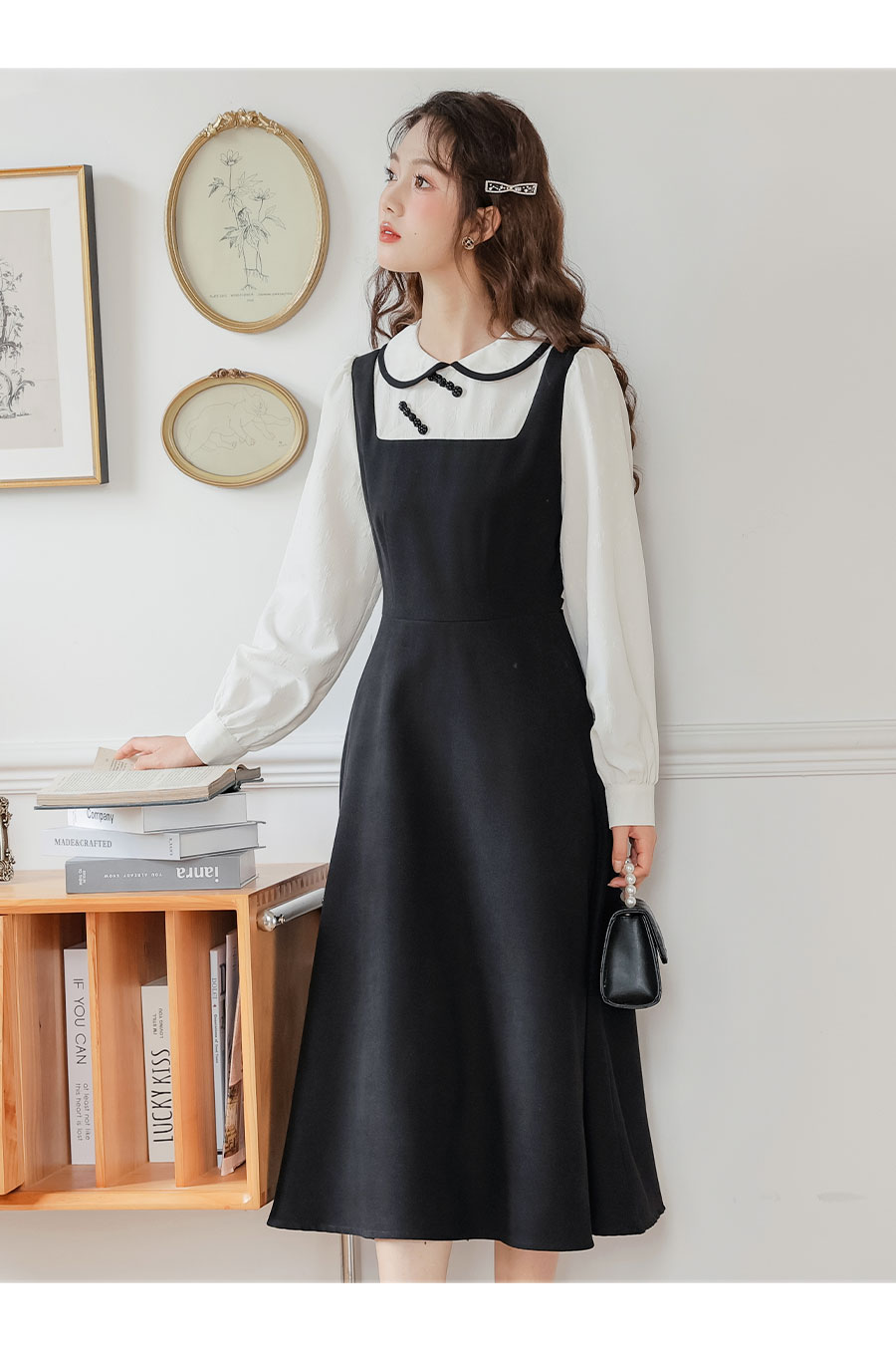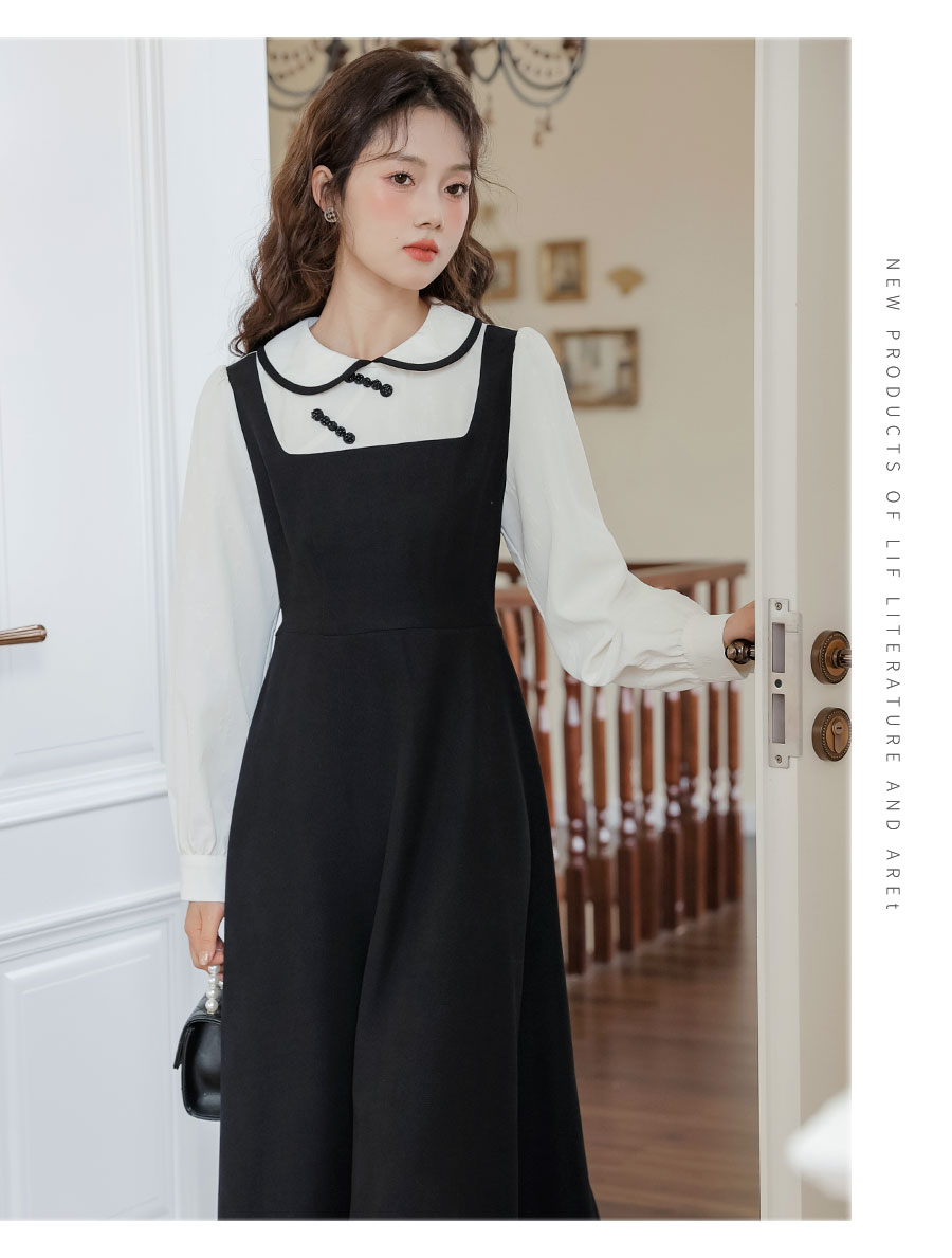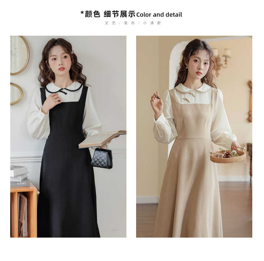 新中式長袖連衣裙女裝秋季2023新款法式氣質假兩件減齡顯瘦長裙子