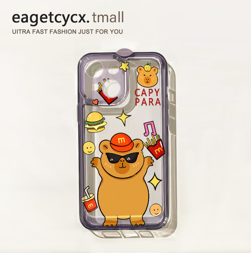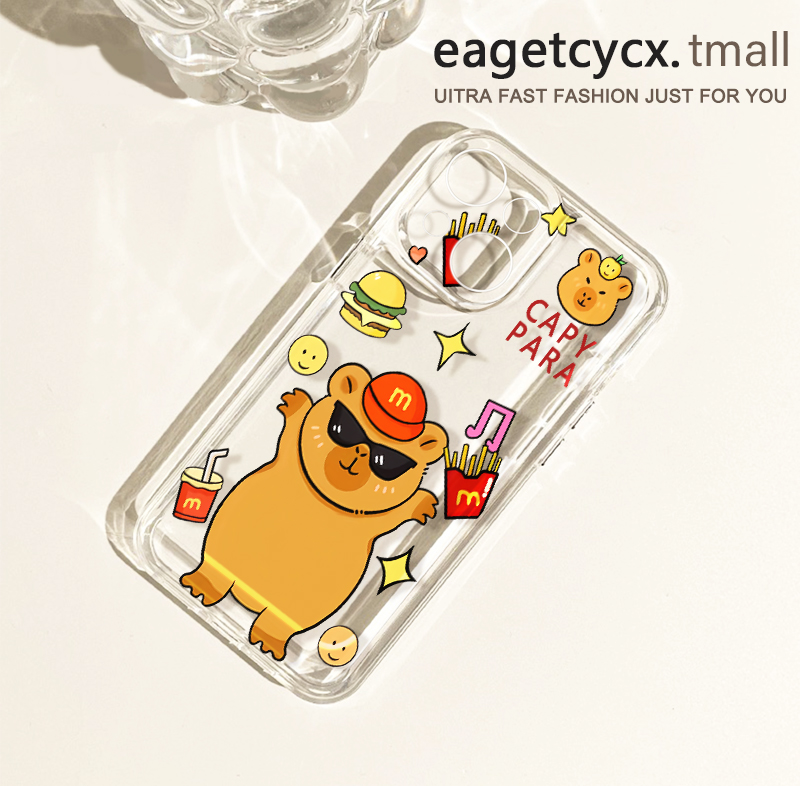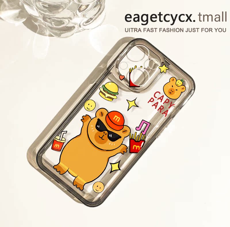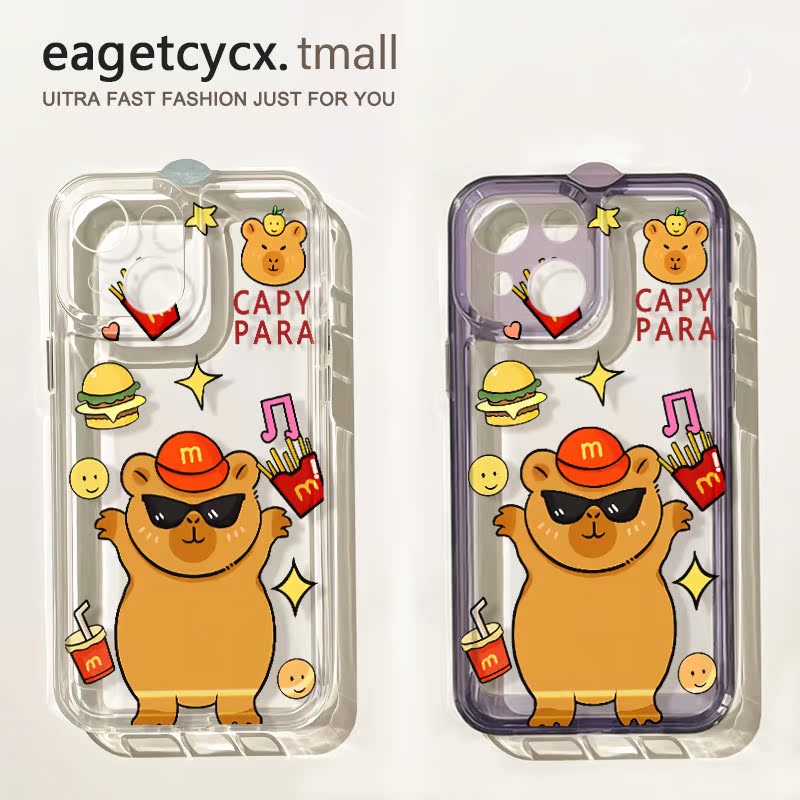 趣味卡皮巴拉水豚適用蘋果15promax手機殼iPhone14透明13新款12pro情侶小眾11plus亞克力xs女xr全包x防摔硬殼