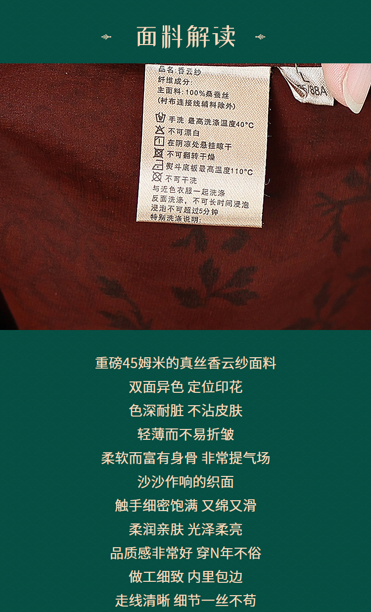 45姆米重緞香云紗連衣裙女2023旗袍新款氣質立領印花桑蠶絲真絲裙