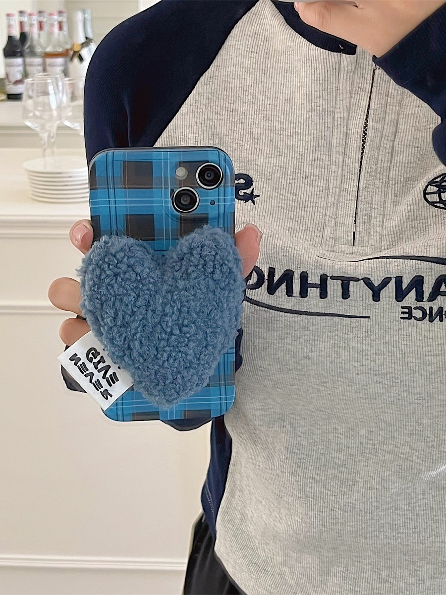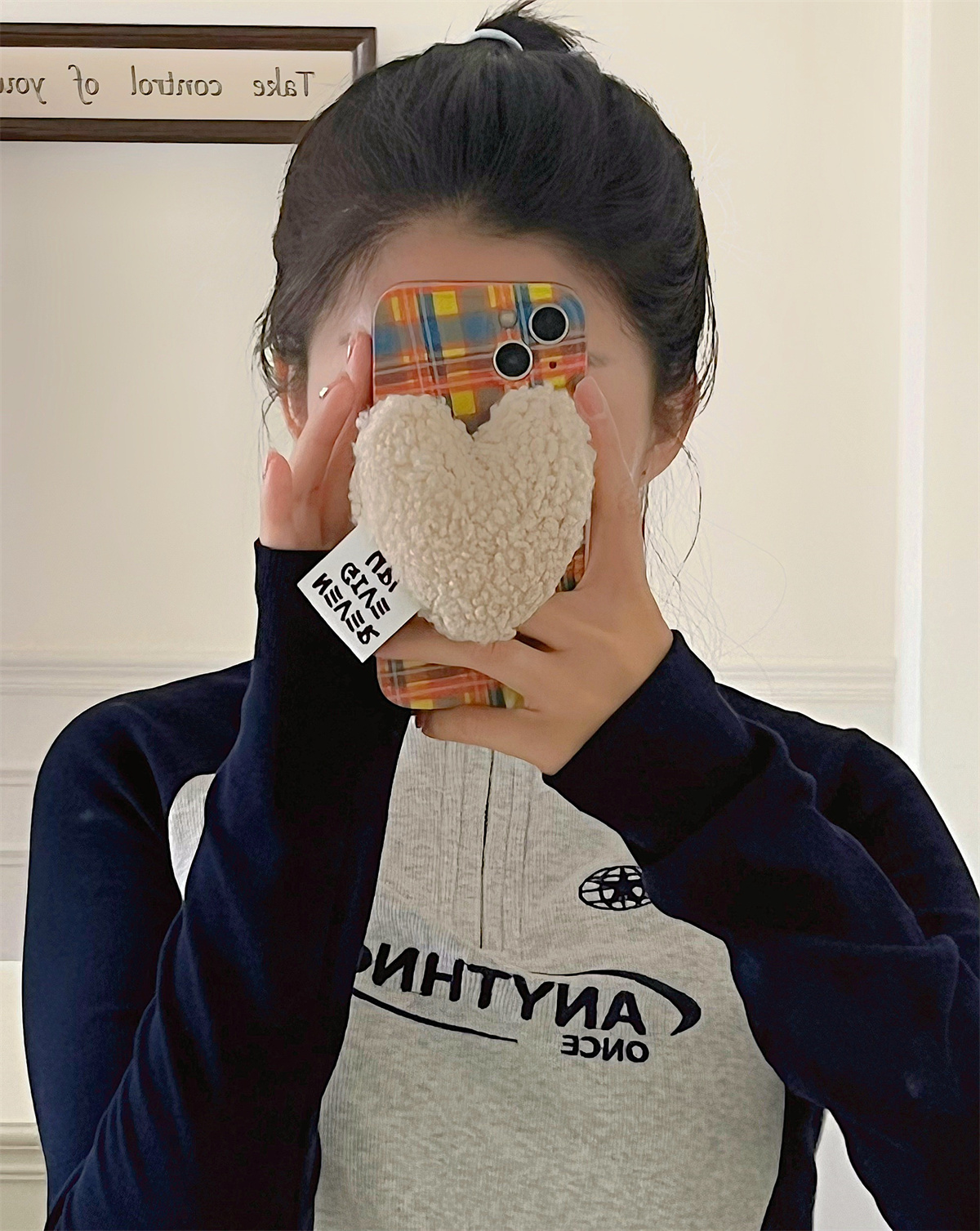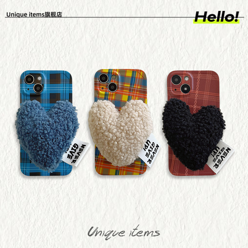 相框格子毛絨愛心卡通ins風格適用iPhone15promax蘋果14手機殼12全包ins帶鋼化膜簡約可愛個性萌趣少女13新款