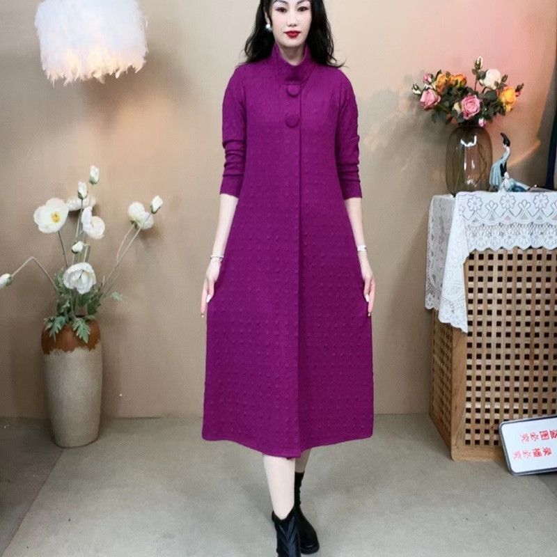 25蘇杭好貨.秋冬新款韓版寬松遮肚子顯瘦加厚中長款連衣裙中年媽