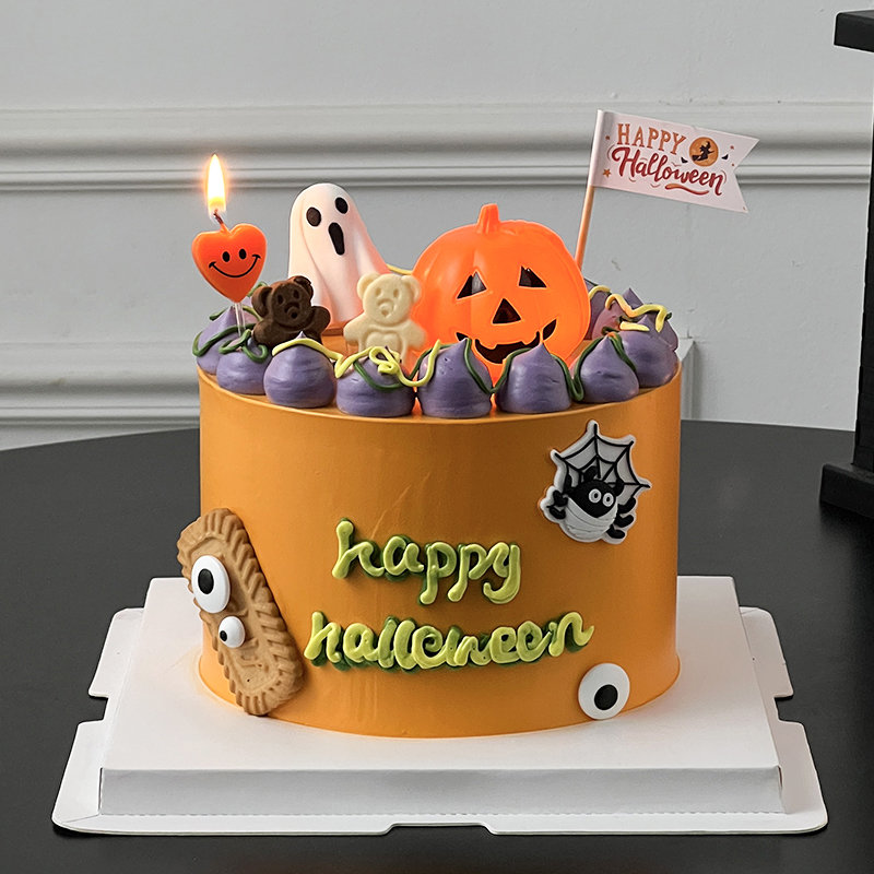 萬圣節快樂蛋糕裝飾軟膠小鬼發光南瓜燈蜘蛛網擺件萬圣夜派對插件