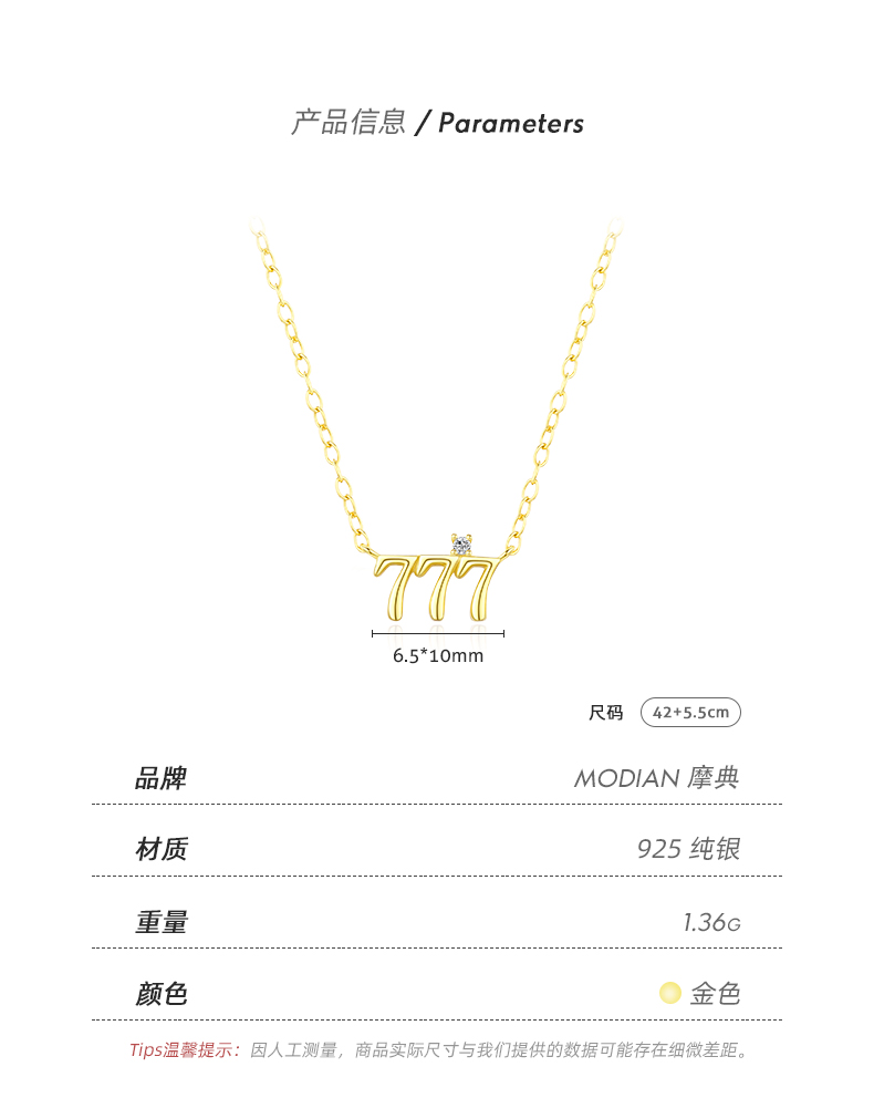 MODIAN摩典S925純銀幸運數字777項鏈女小眾設計精致通勤風鎖骨鏈