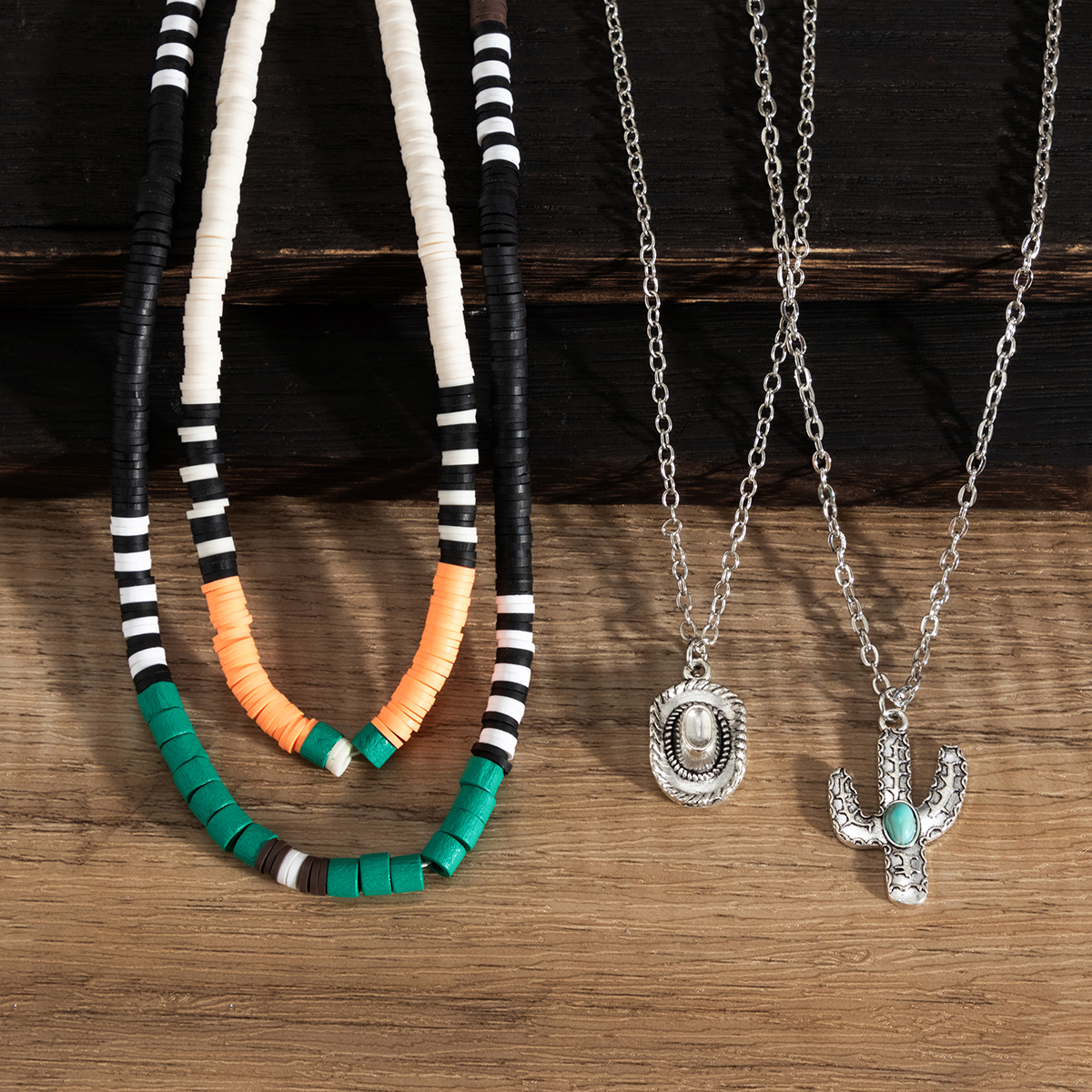 4件套仙人掌軟陶項鏈套裝 歐美新潮復古網紅時尚旅行拍照配飾品