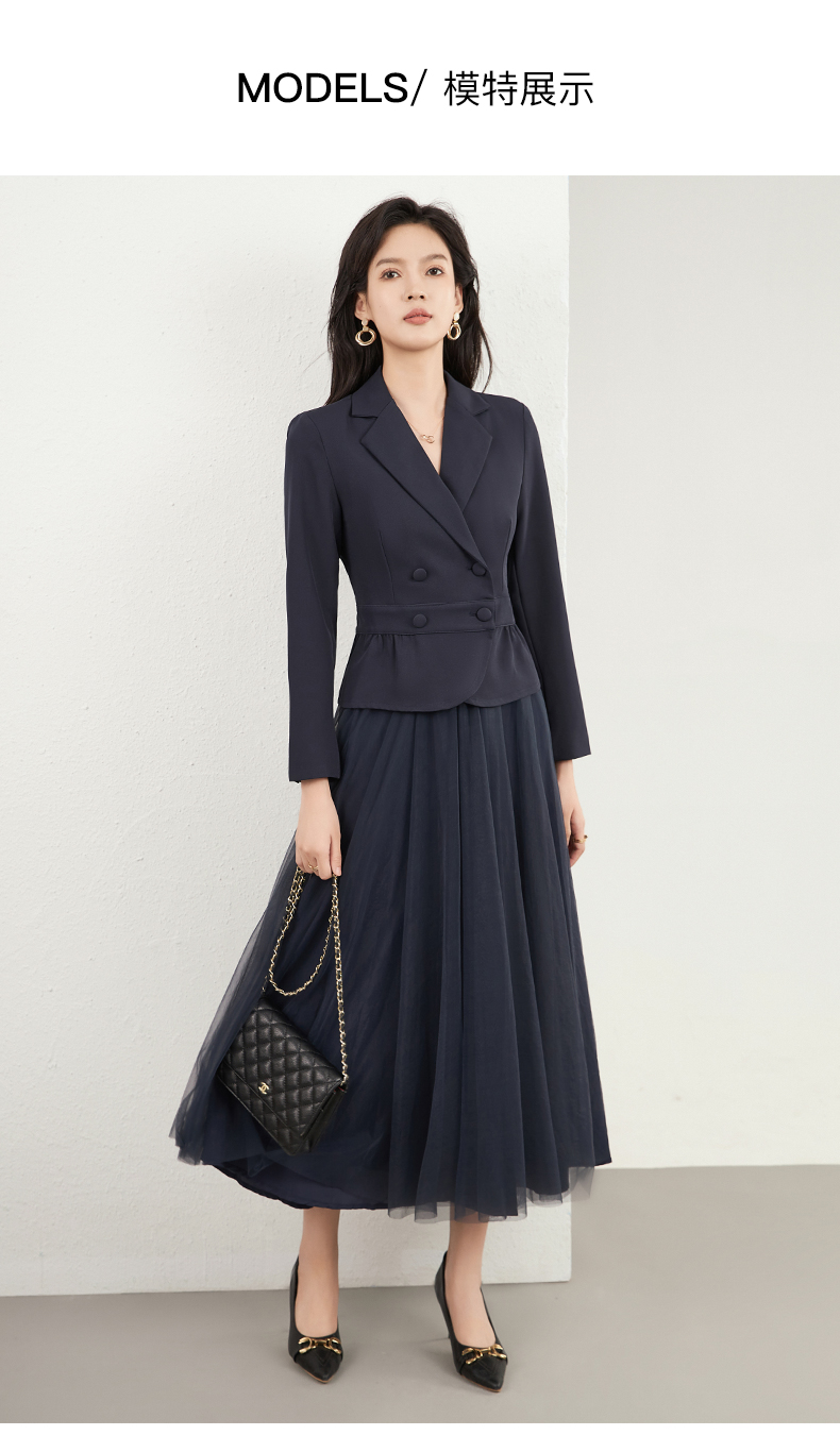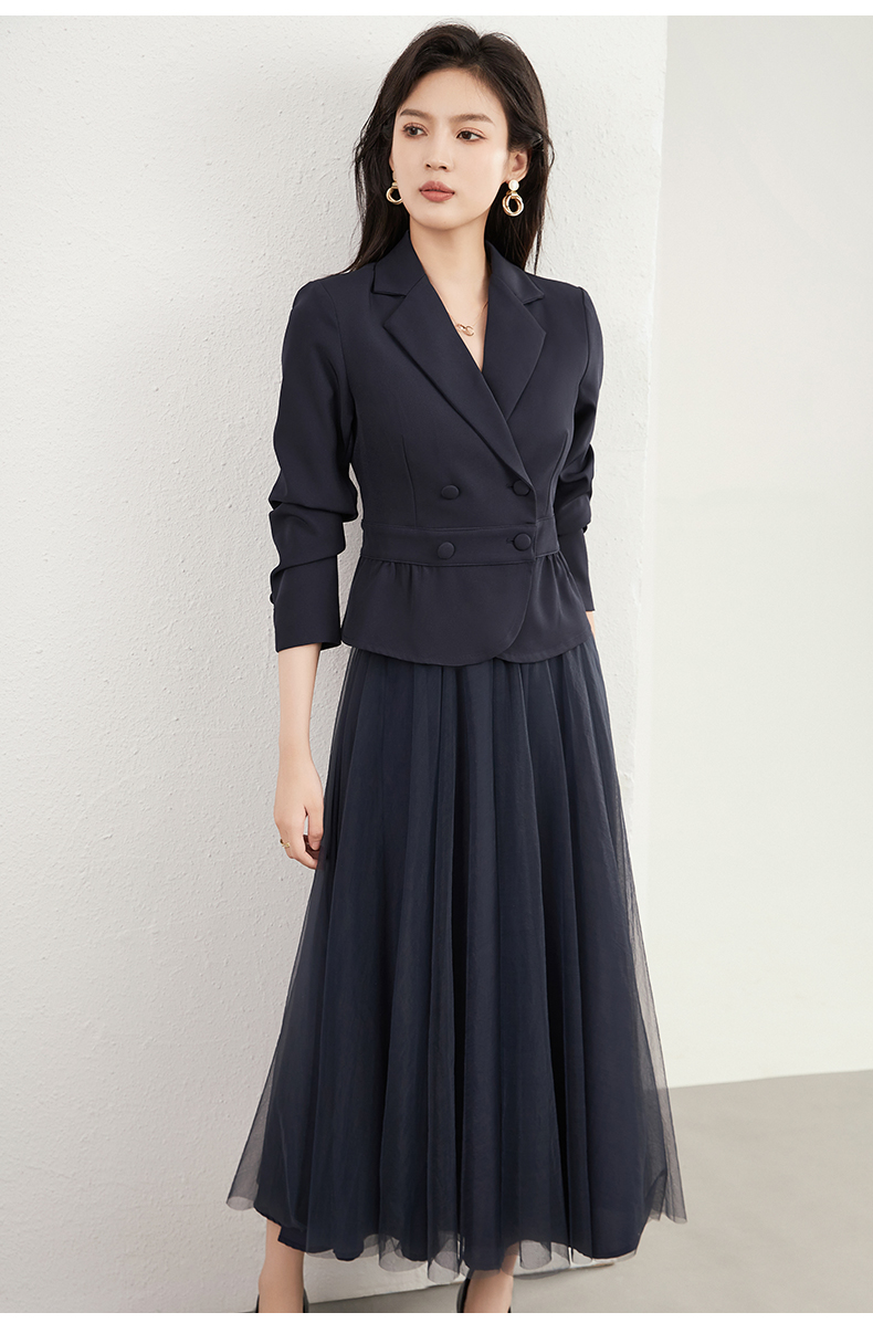 通勤氣質輕奢女裝修身西裝外套+網紗半身裙大擺裙套裝女秋冬新款
