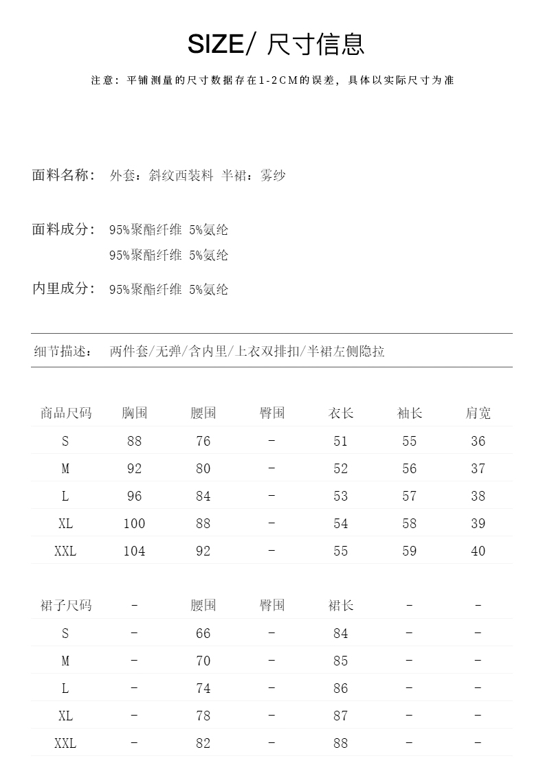 98¥ CZ3457 0vBYWdRD1iE¥ https://m.tb.cn/h.58ENH5n 通勤氣質輕奢女裝修身西裝外套+網紗半身裙大擺裙套裝女秋冬新款 --------------------- 通勤氣質輕奢女裝修身西裝外套+網紗半身裙大擺裙套裝女秋冬新款 --------------------- 氣質西裝外套,網紗裙擺 --------------------- 【原售價】398元 【優惠券】10元 【券后價】388元。