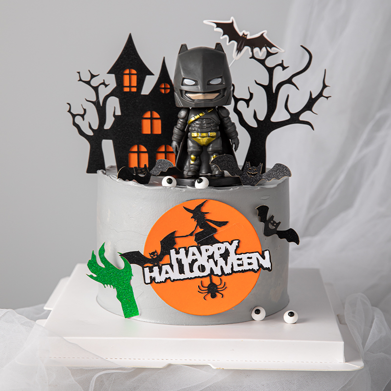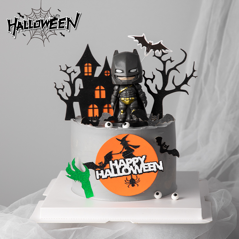 網紅萬圣節蛋糕裝飾英雄蝙蝠擺件HappyHalloween女巫城堡插牌配件