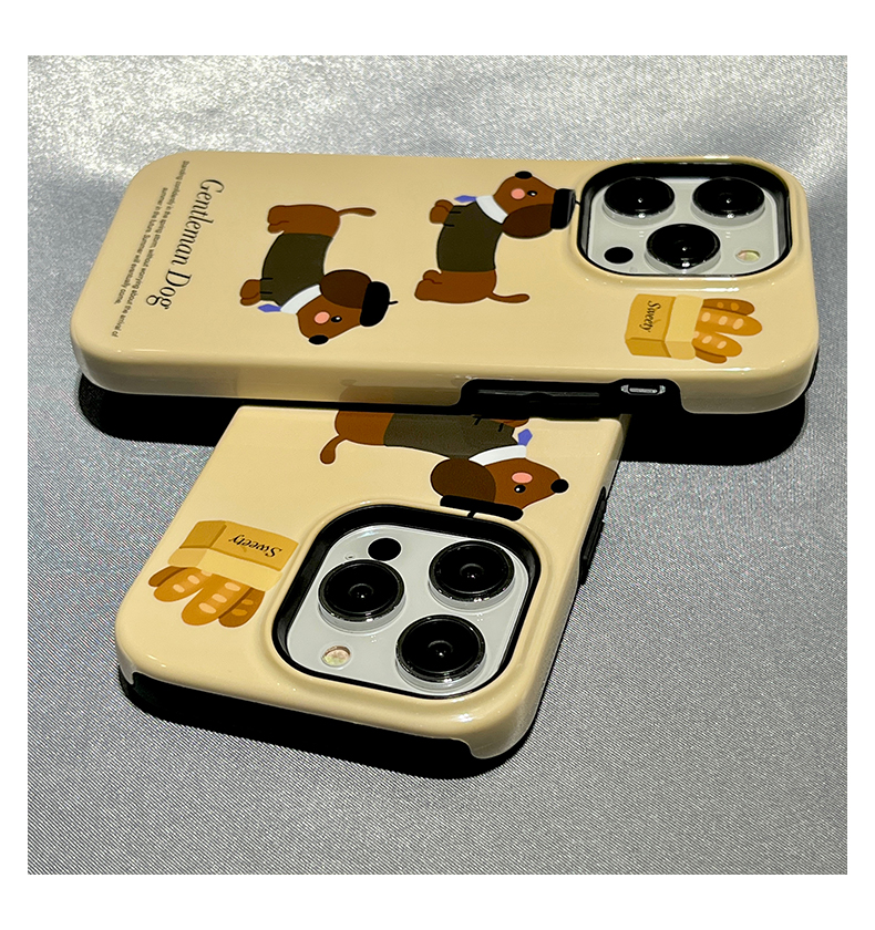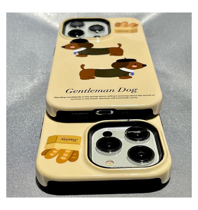 可愛卡通臘腸小狗適用蘋果15Pro手機殼iphone14新款13pro防摔15ProMax小眾11女款12菲林二合一簡約男全包韓系