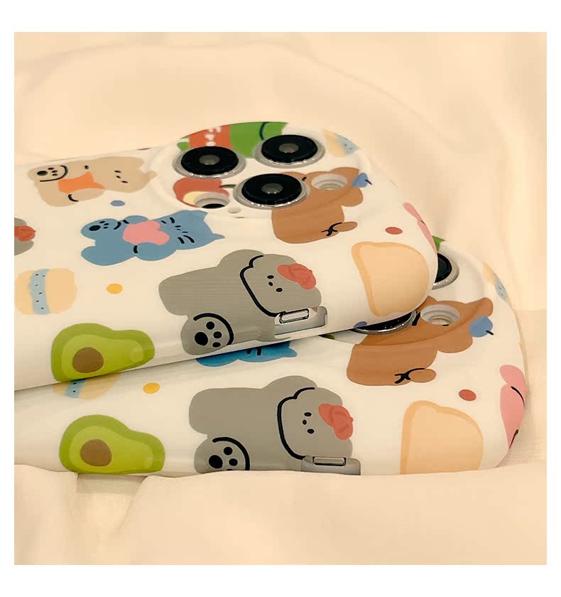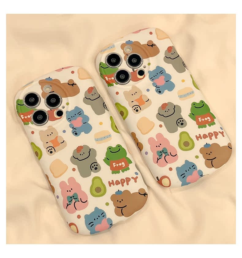可愛卡通動物涂鴉適用蘋果14手機殼iPhone13ProMax新款14Pro女12防摔11全包15Pro水貼硅膠創意簡約軟殼保護套