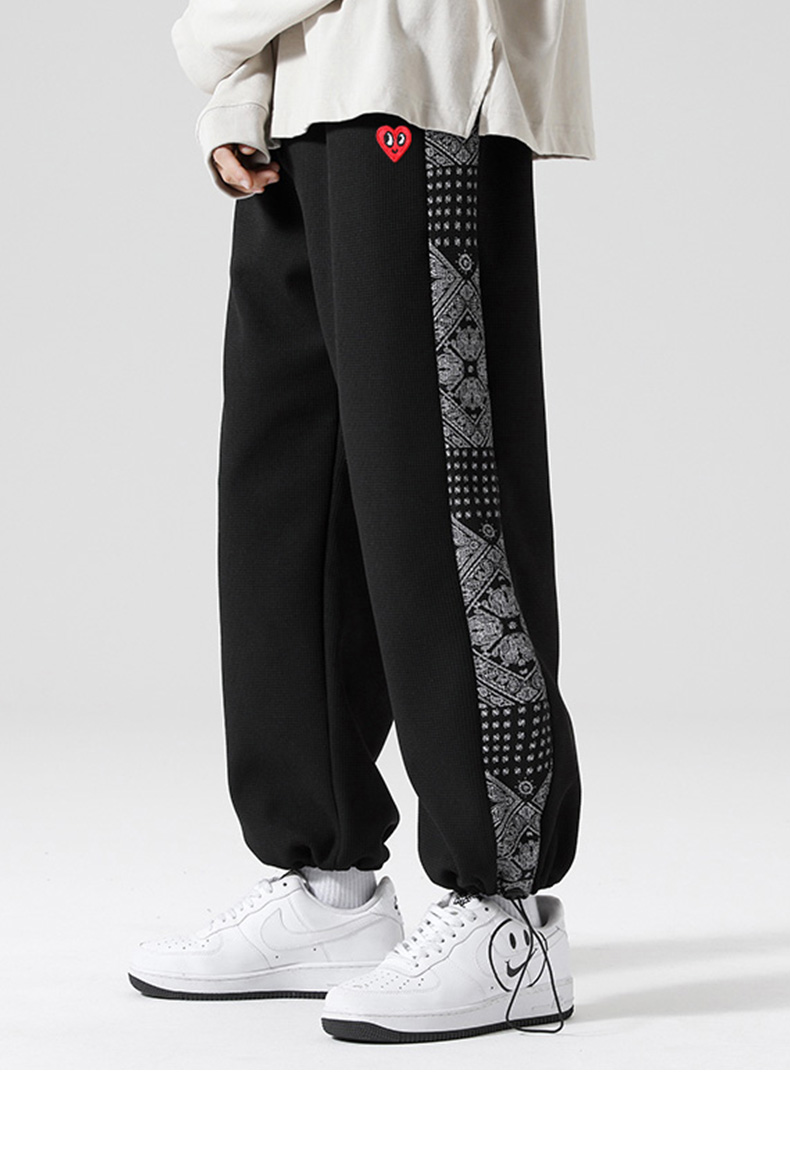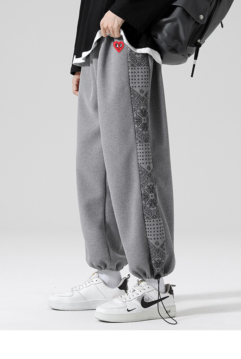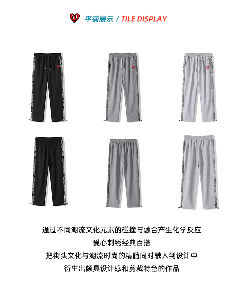 查爾斯桃心 垂感抽繩休閑褲子男2023新款春秋季愛心刺繡闊腿長褲