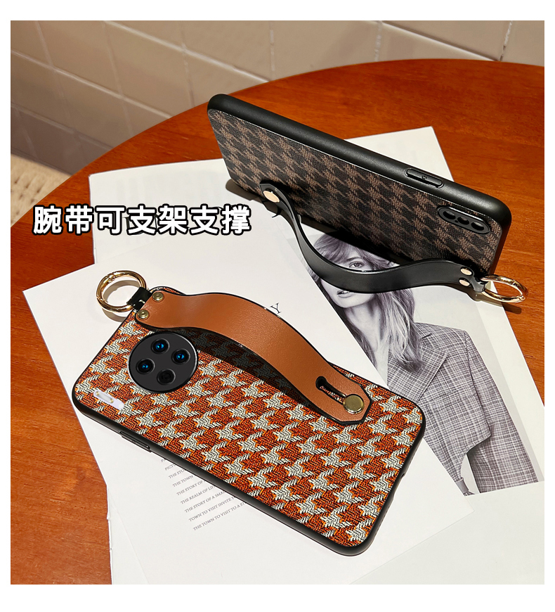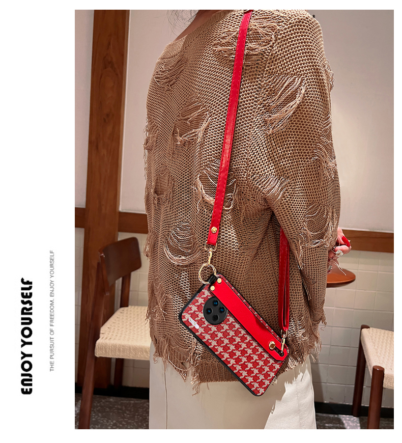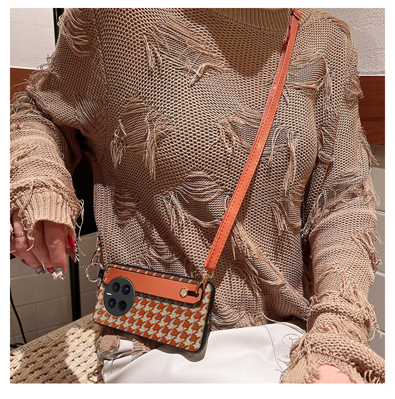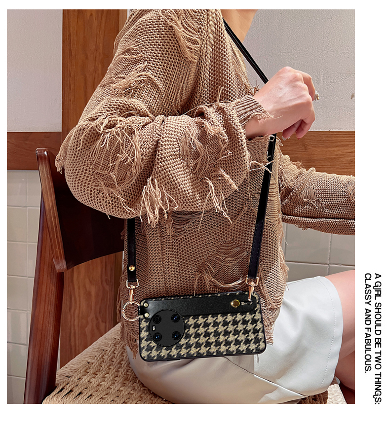 華為mate60手機殼格紋斜挎腕帶50pro輕奢潮牌冬季復古風MATE40PRO可支架支撐30保護斜背外殼20rs皮套女適用于