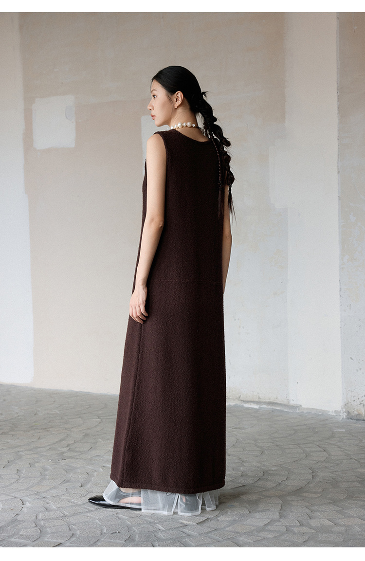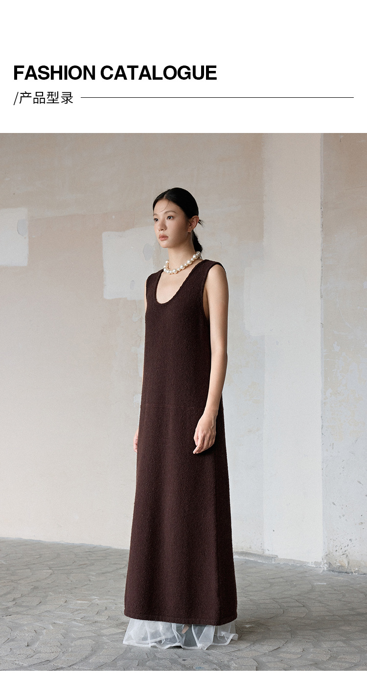 COLINE羊毛針織馬甲背心裙女無袖鏤空中長a版長裙2023秋冬季新款