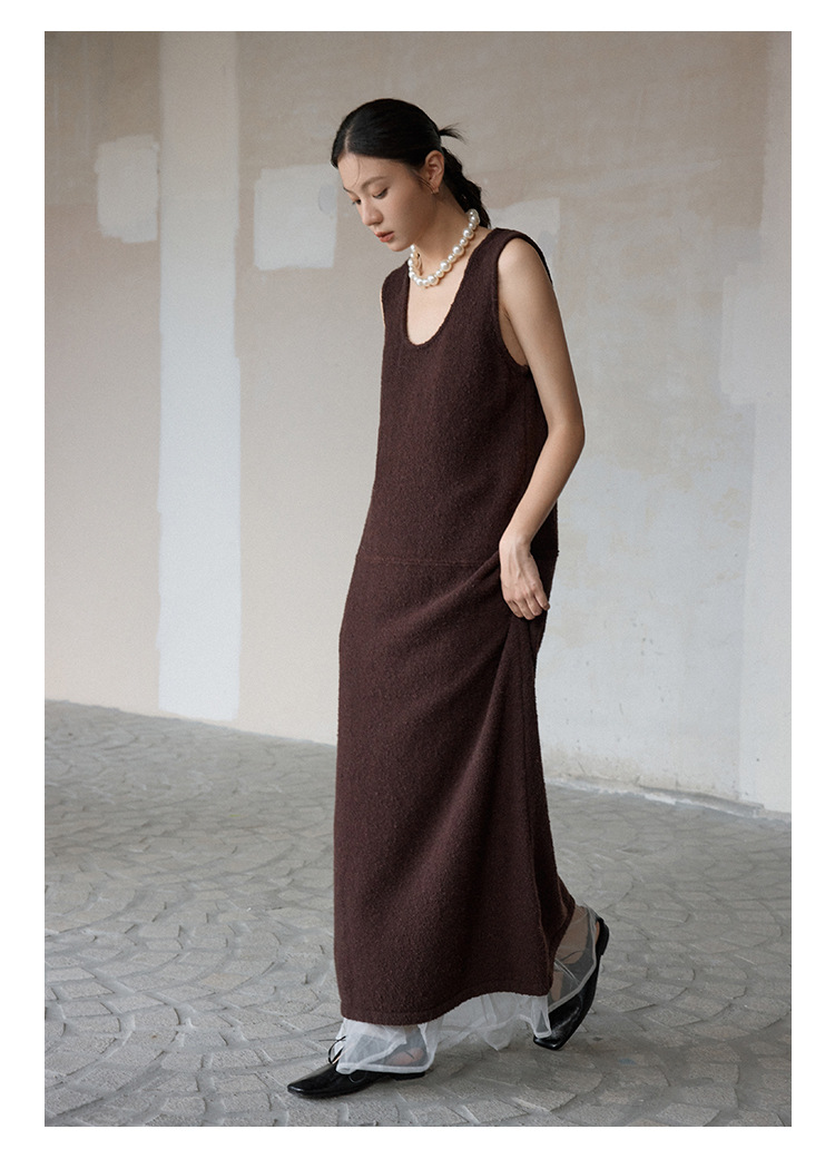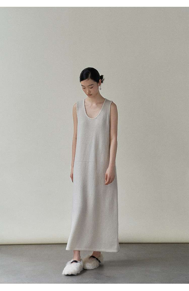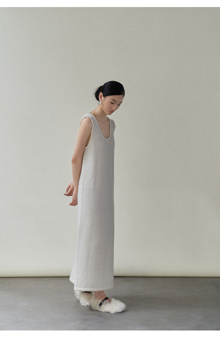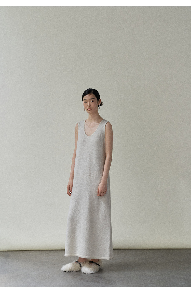 共線 COLINE白色針織背心連衣裙長款慵懶風寬松外穿u領氣質肌理感