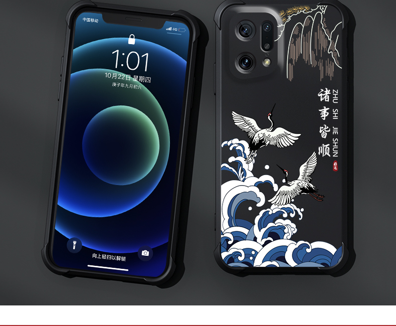 適用oppofindx5手機殼findx6無邊框findx2/x3pro硬殼fandx6pro男女新年款中國風超薄裸機手感諸事順利散熱潮