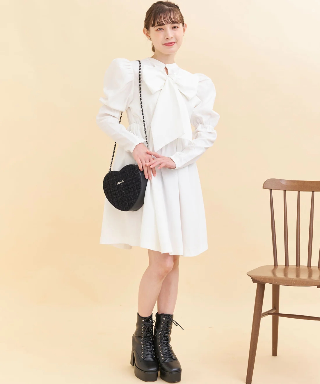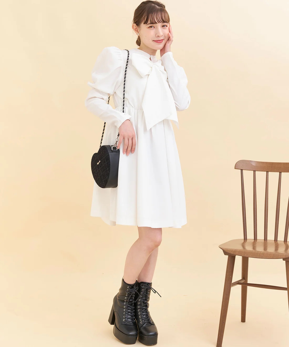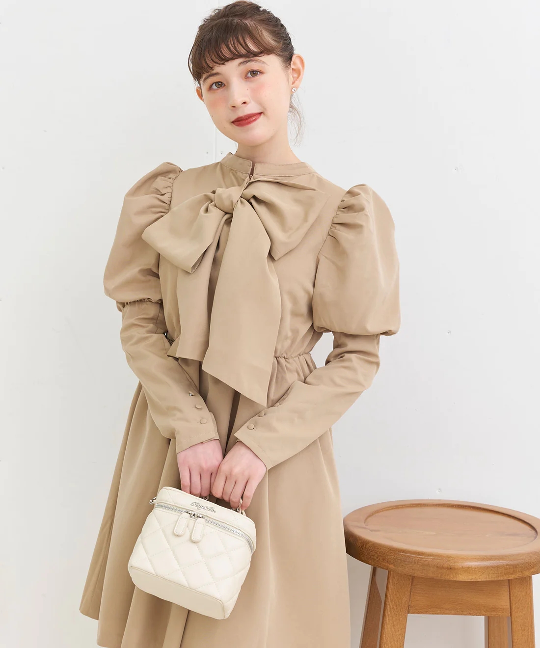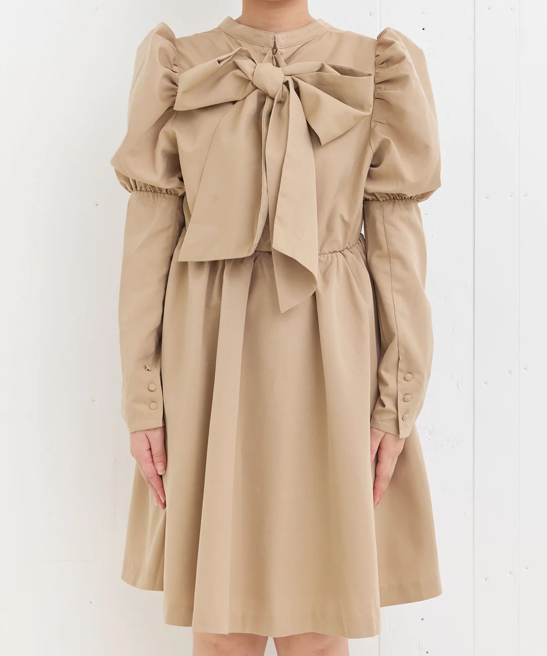 秋冬款 純元 出口日單 收腰 大蝴蝶結襯衫 長袖連衣裙